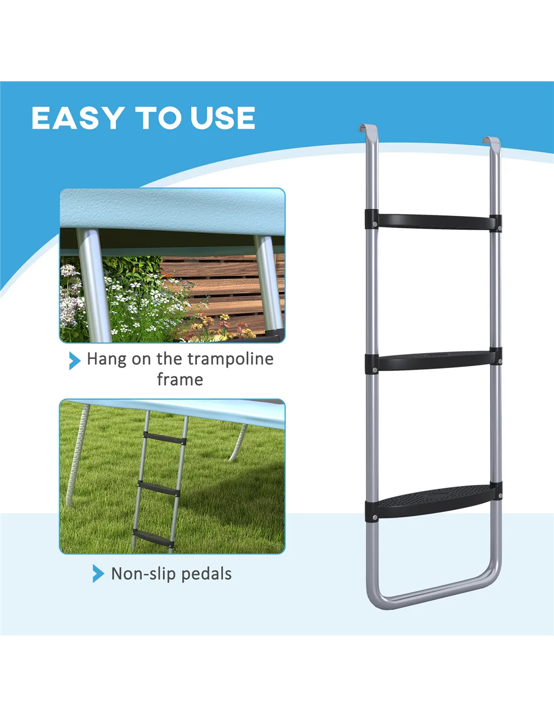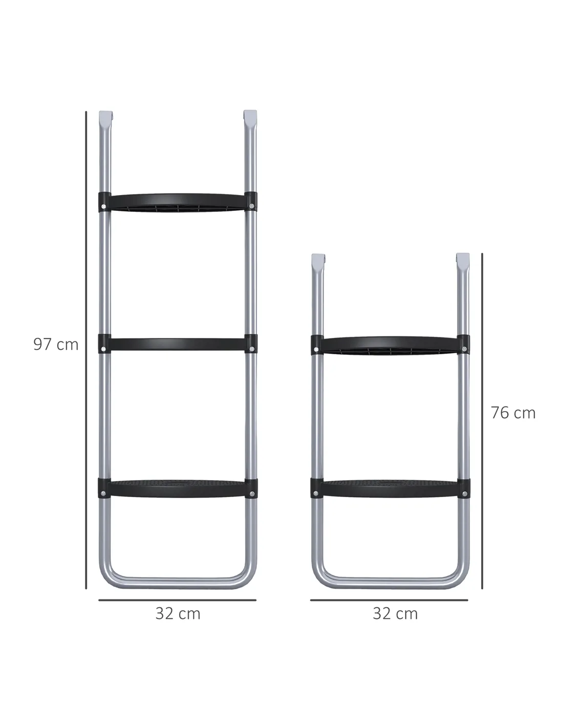 SPORTNOW Galvanised Steel Trampoline Ladder, 2 Steps/3 Steps Outdoor Trampoline Accessories for 6ft, 8ft, 10ft, 12ft, 13ft, 14ft, 16ft Trampoline, 97L x 32Wcm, Silver Tone