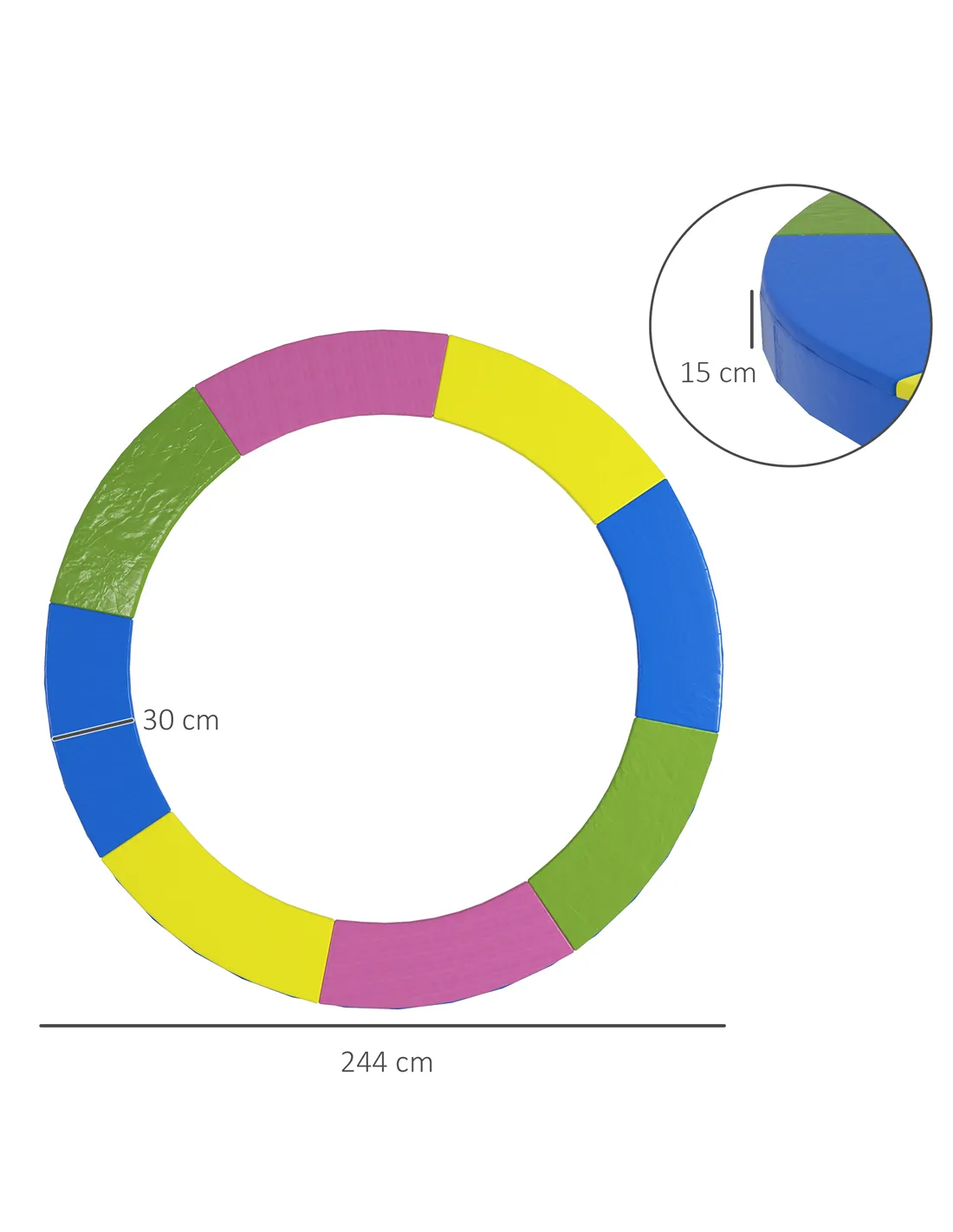 Protect yourself from trampoline injuries with the SPORTNOW 8ft trampoline padding replacement. Made of high-density foam, it provides a comfortable and safe surface over the springs and steel edges. The pad perfectly fits garden trampolines with round frames, ensuring maximum coverage and durability. Enjoy endless hours of worry-free entertainment with this reliable accessory.