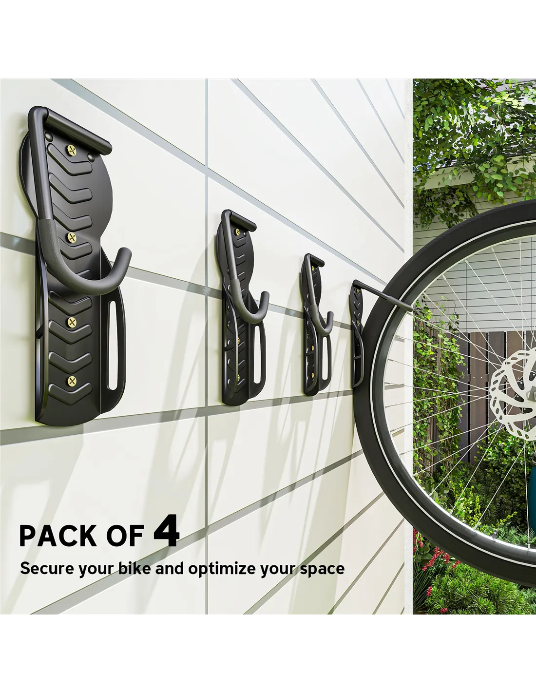 - Set of 4 ensures organised, space-efficient bicycle storage