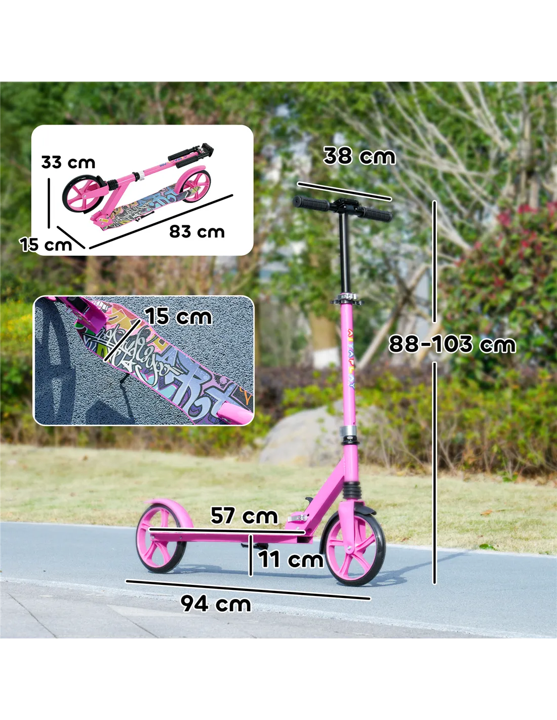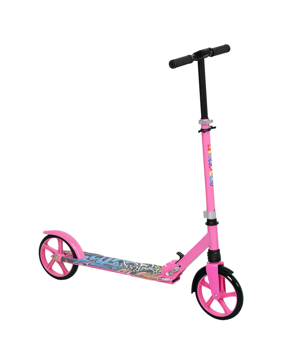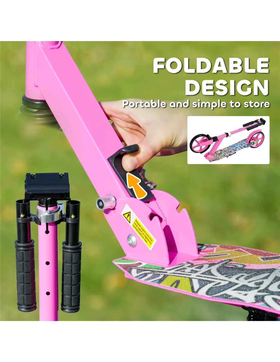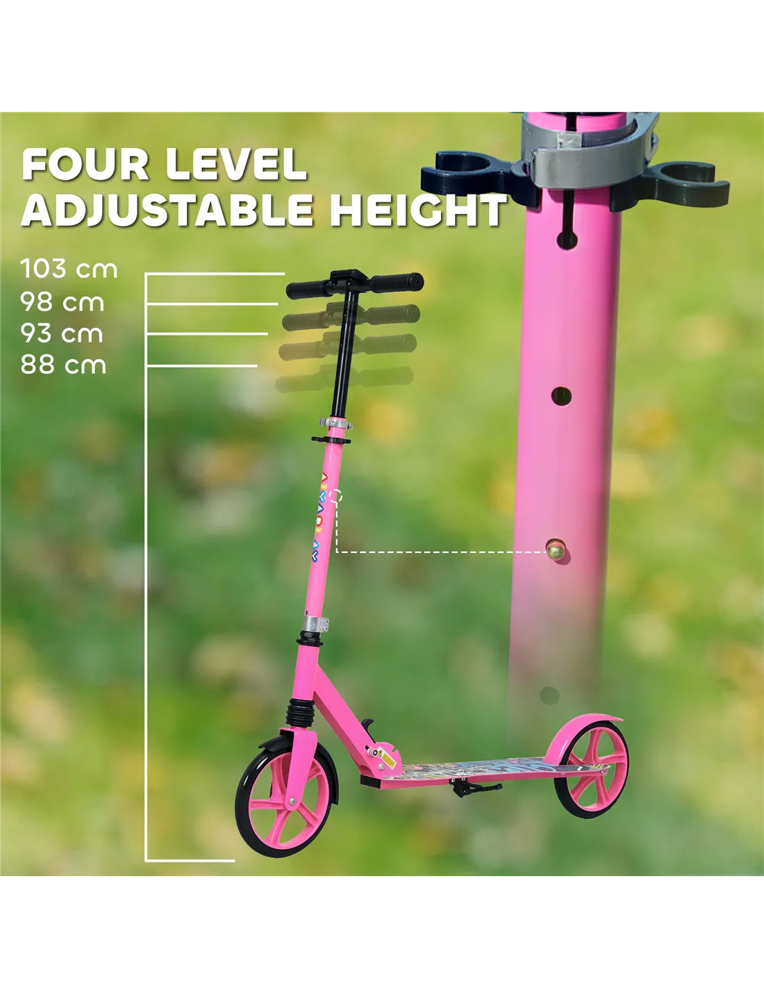 AIYAPLAY Foldable Kids Scooter with Adjustable Handlebar, 200mm Big Wheel, Rear Fender Brake, for Ages 6-12 Years, Pink