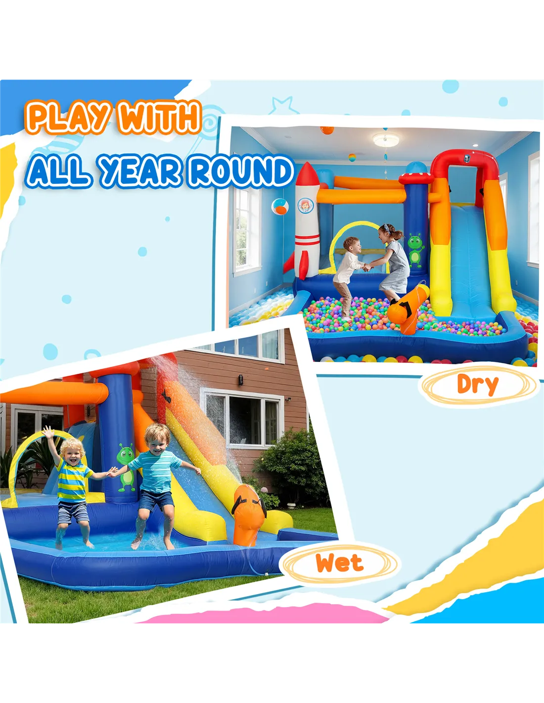 - Suitable for dry or wet play, adaptable to weather changes