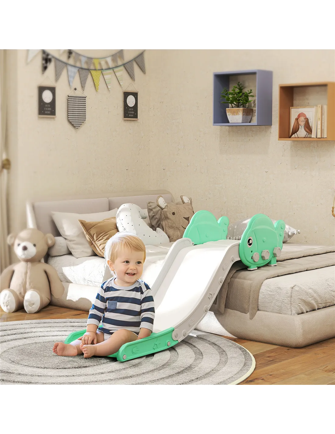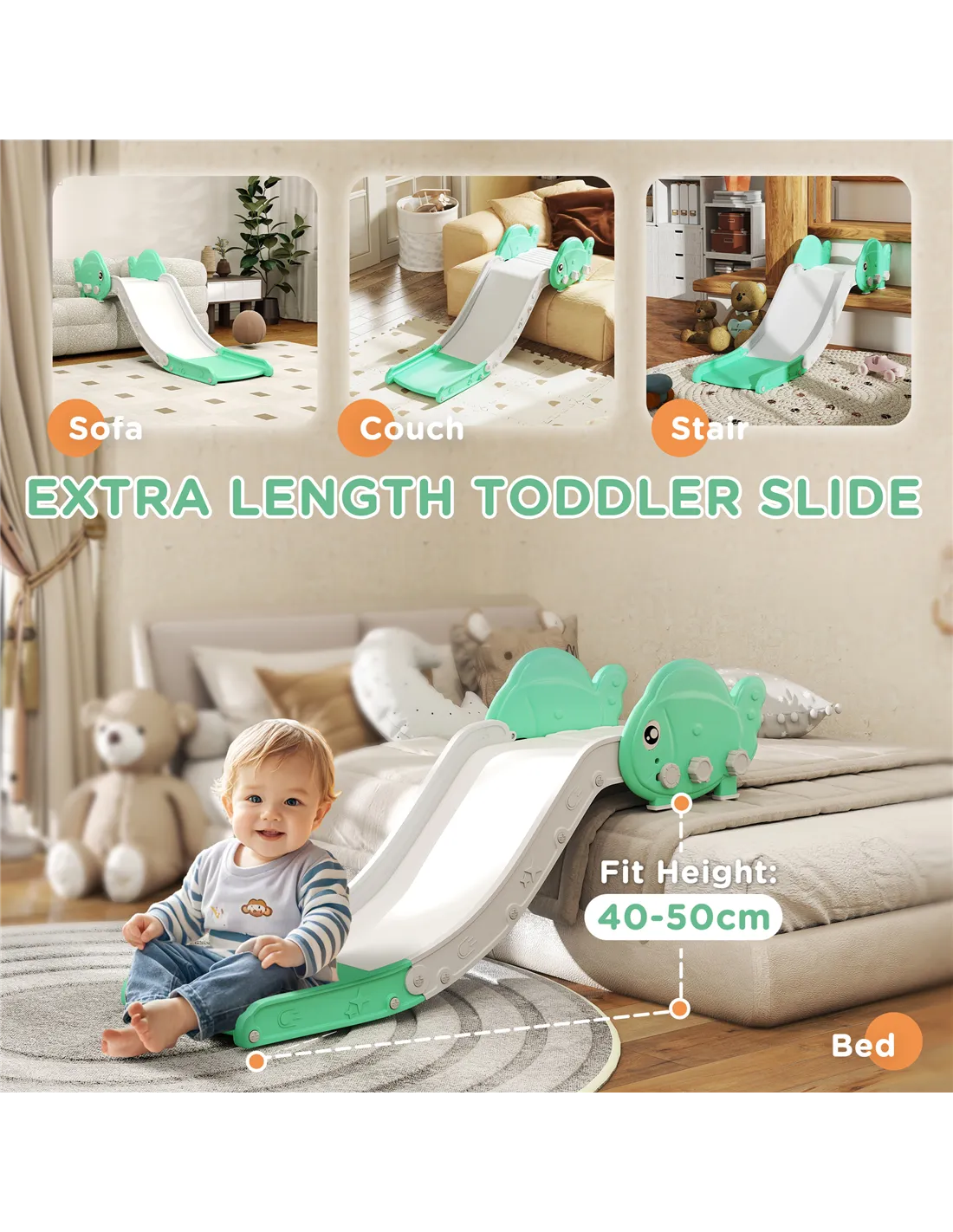 AIYAPLAY Kids Sofa Slide with 130cm Extended Length, HDPE Toddler Slide for Sofa, Bed, Stairs, Easy Assemble & Storage, Green