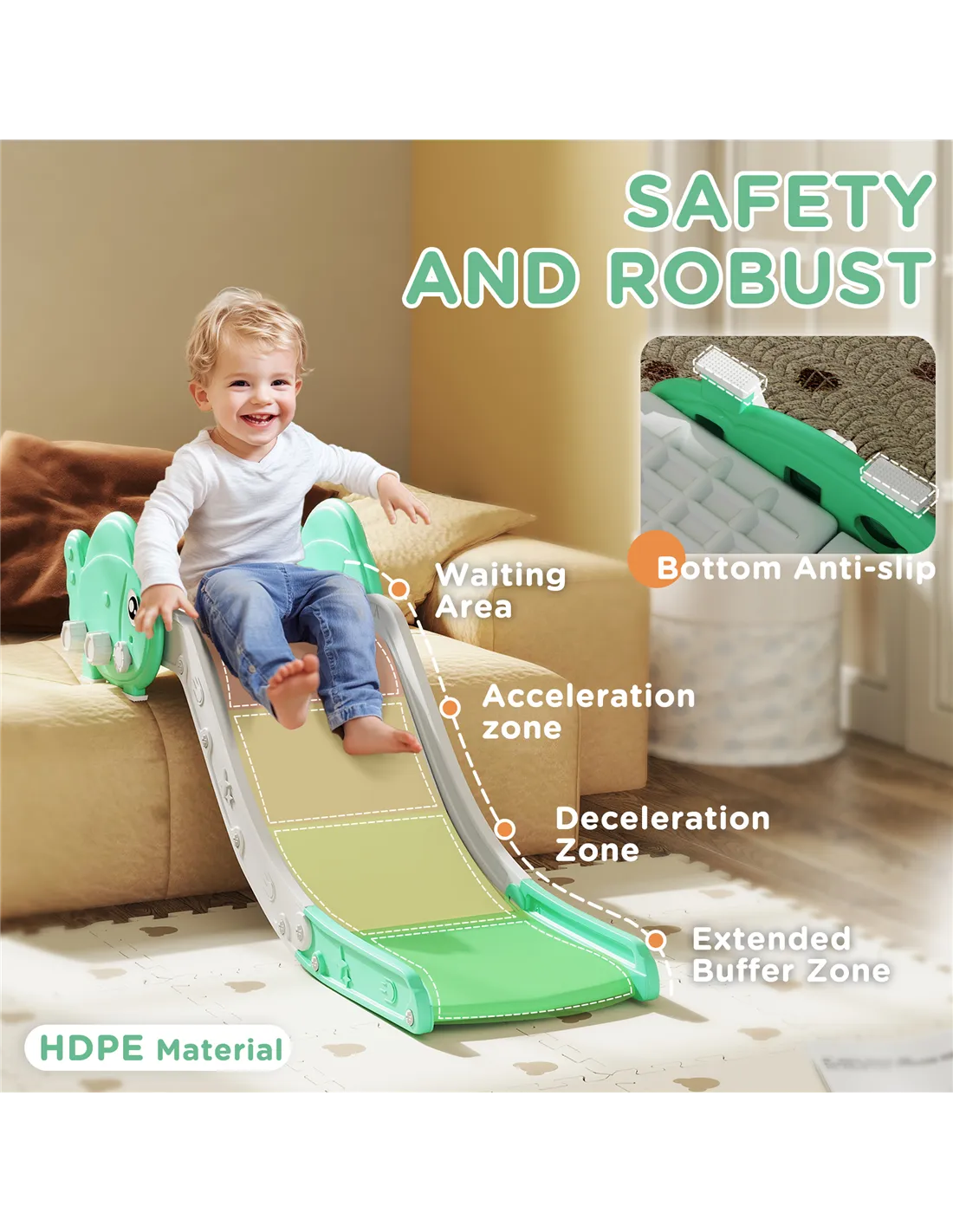 Based on reviews from UK customers, the AIYAPLAY sofa slide is praised for its sturdy build and smooth sliding experience. Parents appreciate the anti-slip pad that enhances safety, while many highlight the ease of assembly and compact storage as key benefits. Users also note the slide’s vibrant green colour adds a cheerful touch to children’s play areas. Overall, the product is valued for combining fun with practical design, supporting toddlers’ active play indoors.
