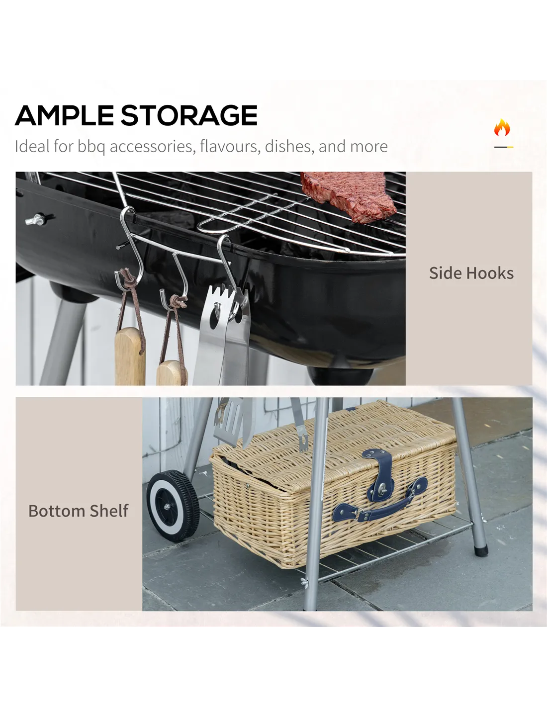 The Outsunny portable charcoal grill is perfect for a variety of outdoor occasions across the UK. Whether you’re hosting a garden barbecue, enjoying a weekend camping trip, or having a picnic in the park, this compact smoker grill offers versatile cooking options. Its sturdy lid and adjustable air vents allow for controlled smoking and grilling, ideal for slow-cooked meats or quick searing. Thanks to the two wheels and side handle, it can be effortlessly moved around your courtyard or patio, making it a practical addition to any outdoor space. The warming rack keeps dishes hot while you prepare the next course, enhancing your alfresco dining experience.