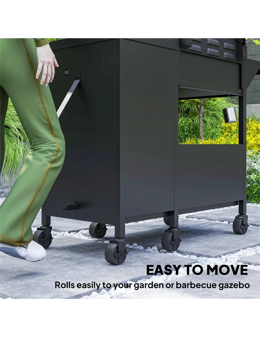 Yes, the BBQ trolley features six castor wheels, four of which have brakes to provide stability when in use and easy manoeuvrability when relocating.