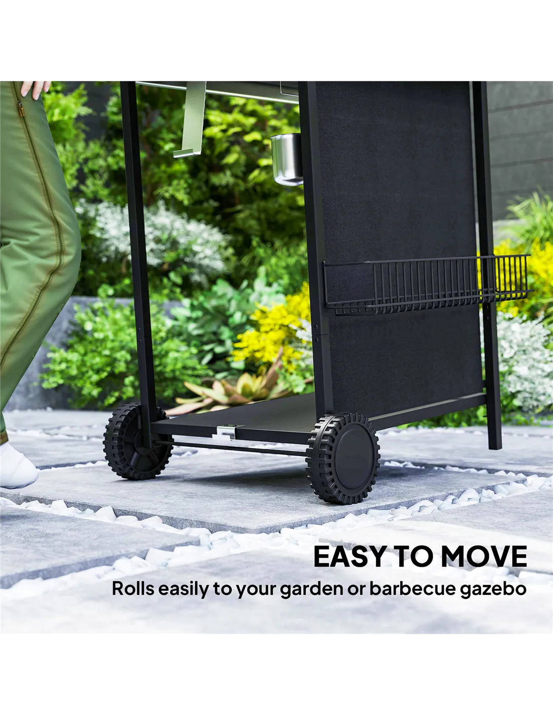 The Outsunny Four Burner Gas Grill BBQ in sleek black is perfect for a variety of outdoor cooking occasions across the UK. Whether hosting a family garden party, enjoying a weekend barbecue with friends, or preparing a casual midweek dinner, this versatile grill offers ample space and precise temperature control to suit all your culinary needs. The side burner is ideal for simmering sauces or warming side dishes while the main grill cooks your meats to perfection. Its compact yet spacious design fits comfortably on patios or decks, making it a practical addition to any outdoor living space. Thanks to its sturdy wheels, relocating the grill to catch the sun or shade is effortless, enhancing your outdoor cooking experience.