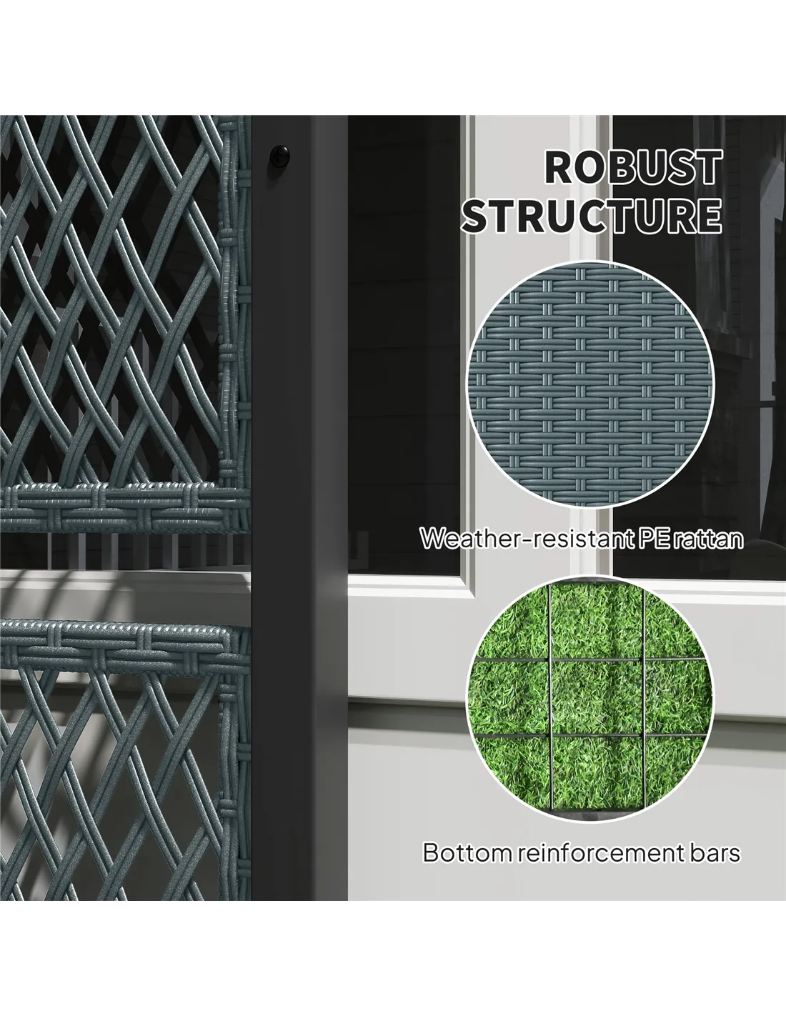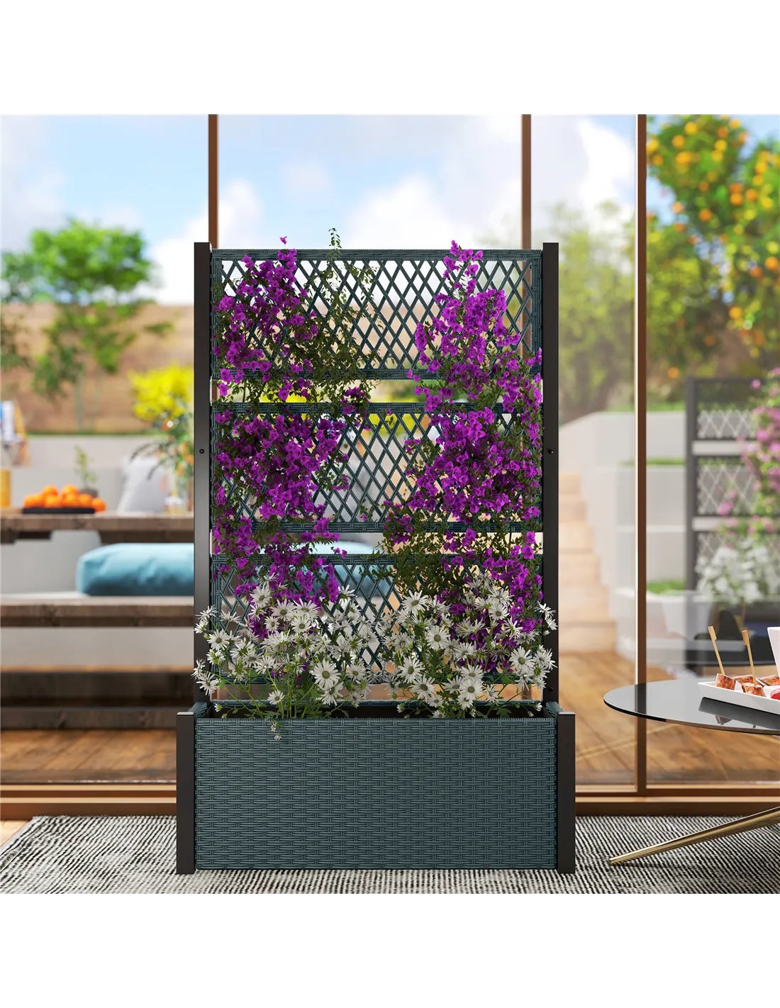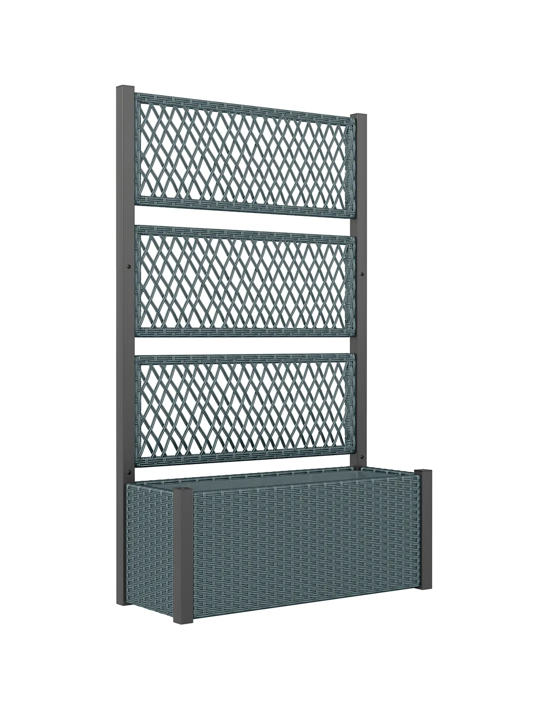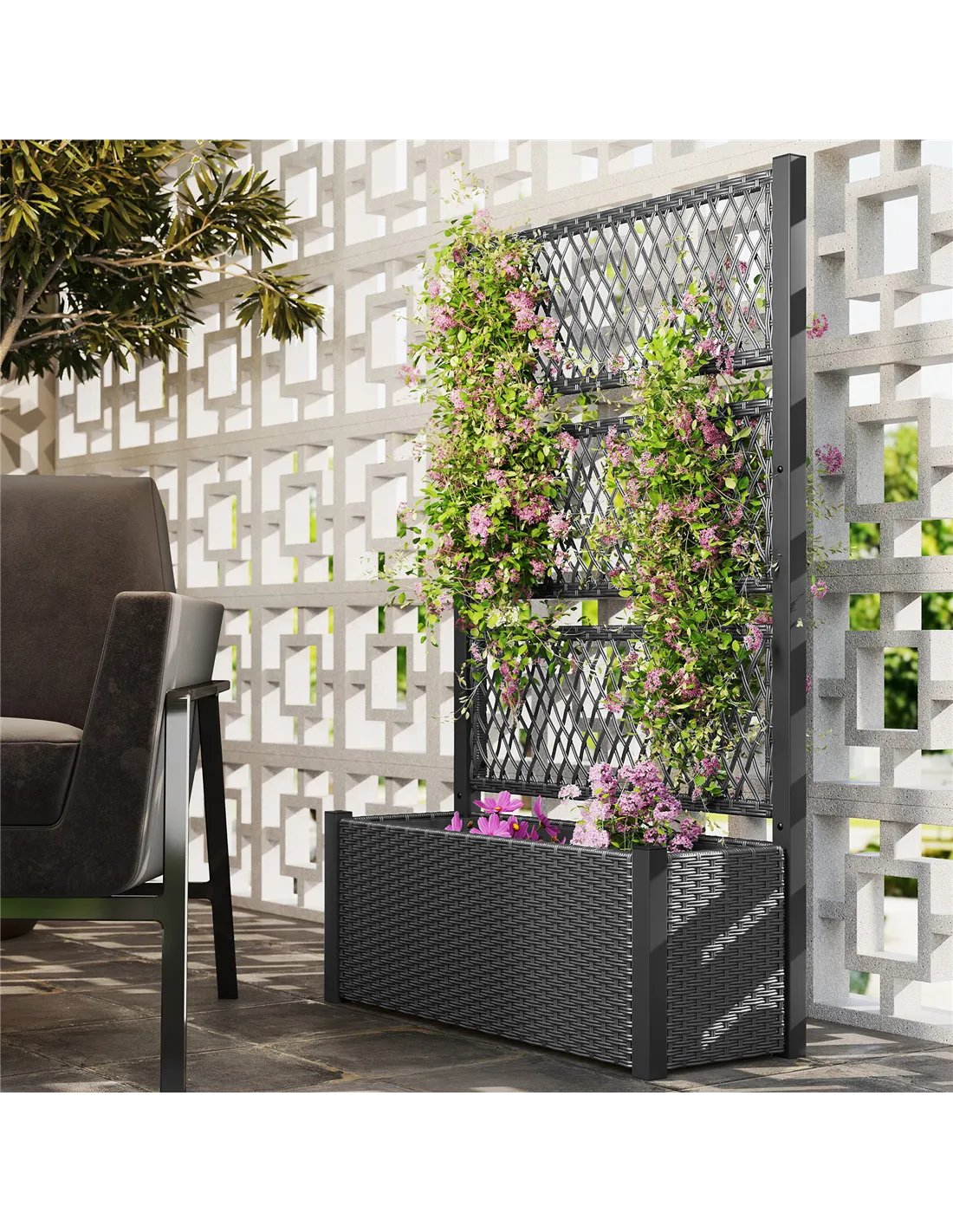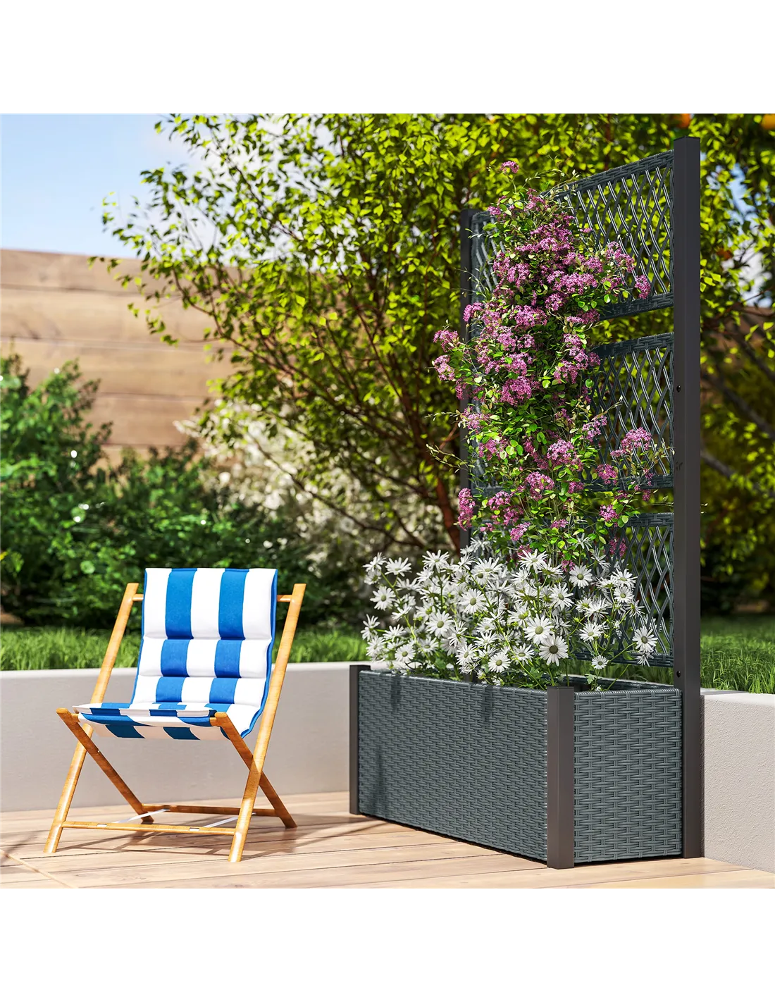 Discover the charm of the Outsunny planter with trellis, blending functionality with style. This raised garden bed features a built-in trellis, suitable for supporting climbing plants and a spacious lower box for a variety of greenery. Crafted from weather-resistant PE rattan and steel, it promises enduring elegance and ease of maintenance in any garden setting.
