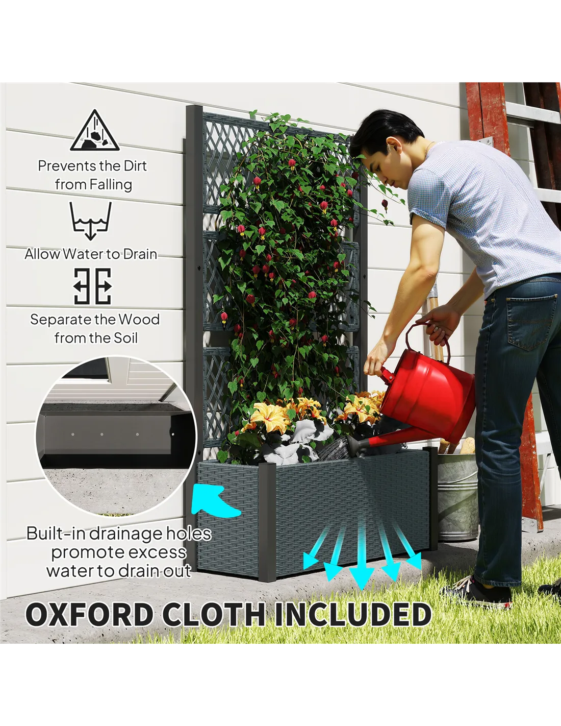 Outsunny Garden Planter Box with Trellis, Liner for Climbing Plants, Vegetables, Flowers, 90 x 35 x 148 cm, Charcoal Grey