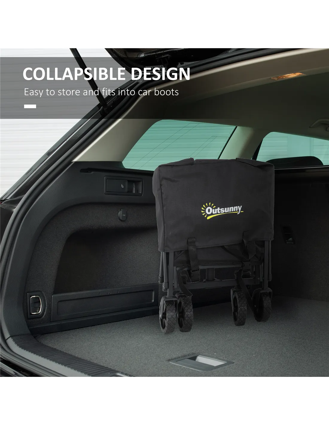 Outsunny 41L Festival Trolley on Wheels, Small Garden Folding Trolley Cart, 60kg Heavy Duty Collapsible Folding Wagon with Adjustable Handle and Carrying Bag for Beach, Camping, Festival, Black