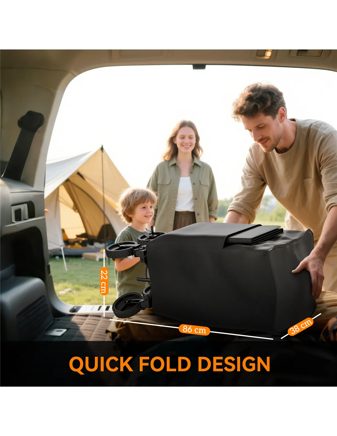 - Folded Dimensions: 38L x 22W x 86H cm