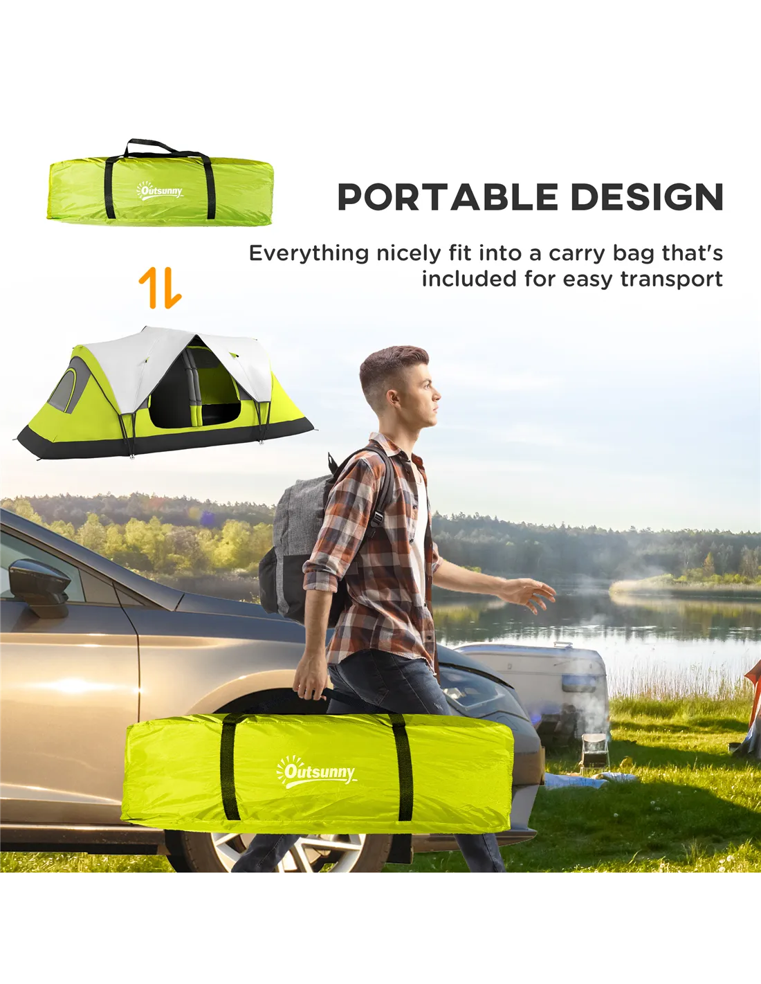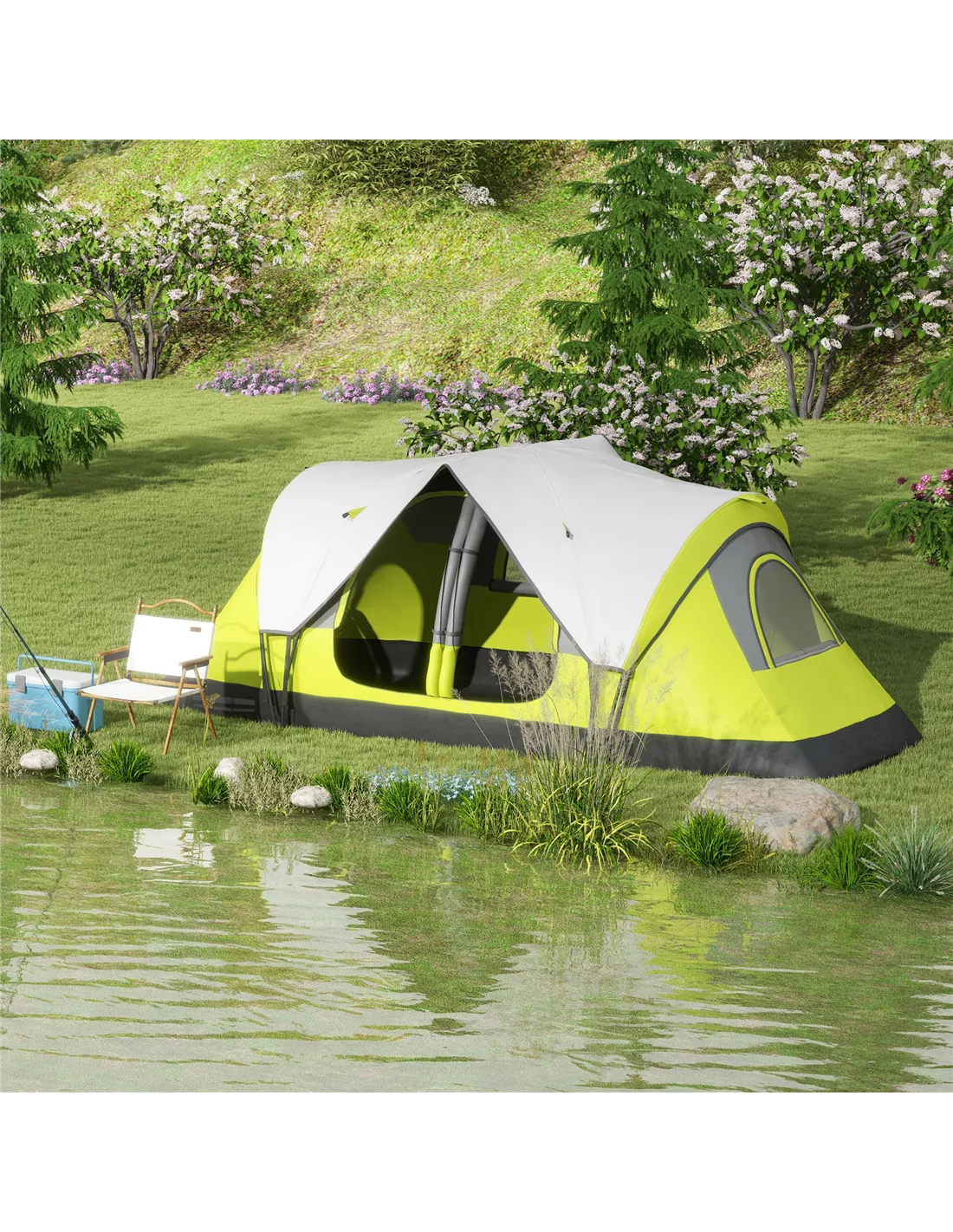 The Outsunny tent is an excellent choice for a variety of outdoor activities across the UK. Ideal for family camping trips, it comfortably accommodates 6 to 8 people, making it perfect for group adventures. Its versatile two-room layout with a removable divider allows you to create either a spacious single living area or two separate sleeping quarters, adapting to your needs. Whether you’re heading to a music festival, fishing by the lake, or hiking in the countryside, this tent provides reliable shelter with its 2000mm waterproof rainfly and sewn-in groundsheets. The bright yellow colour enhances visibility in natural settings, while mesh windows ensure good airflow, keeping the interior fresh during warmer days. Thanks to the included carry bag, ground stakes, and guy ropes, setting up and transporting the tent is straightforward, making it a practical addition to your outdoor gear.