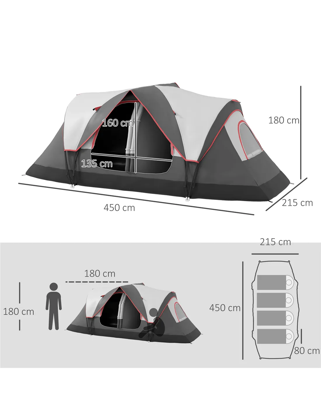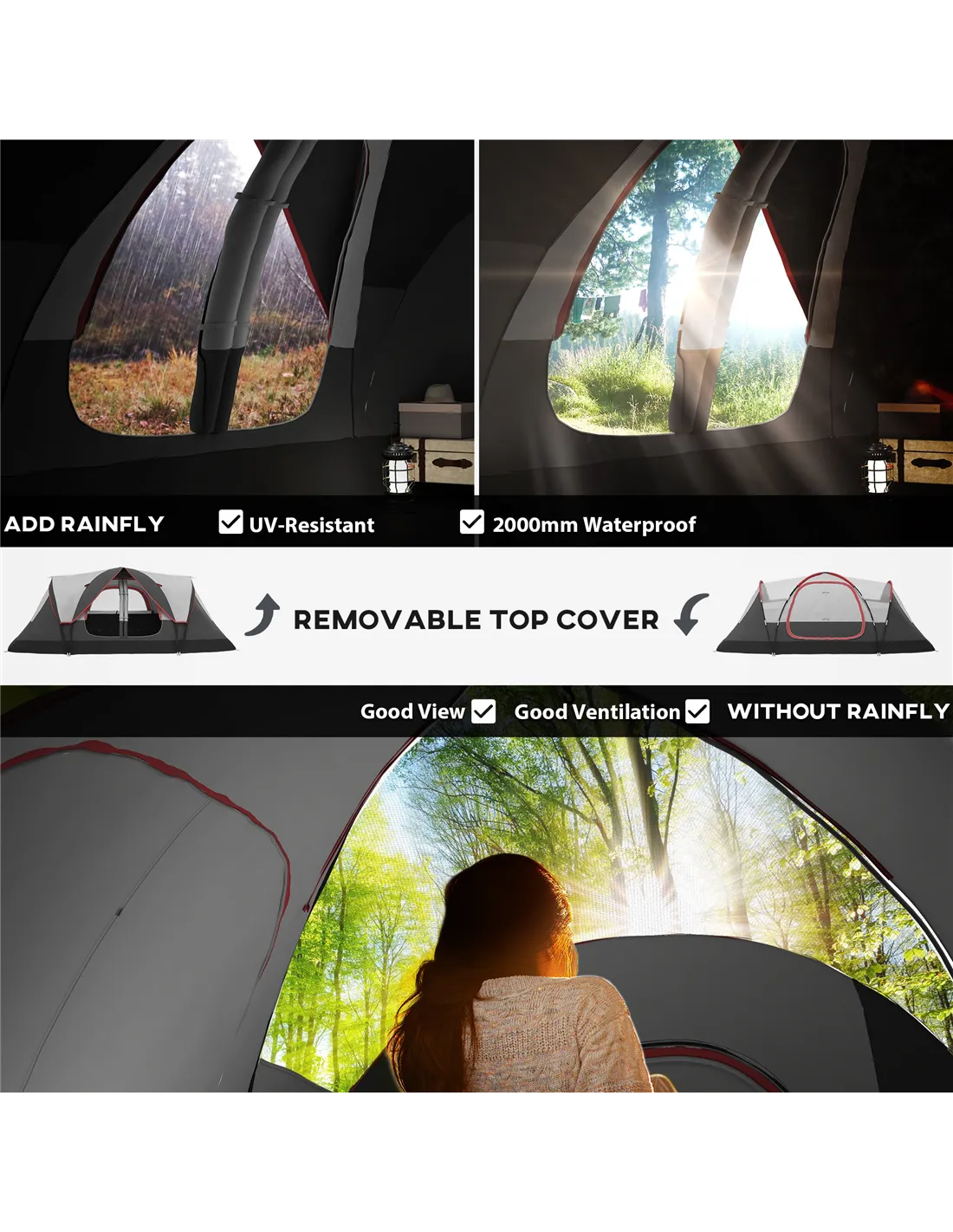 Outsunny Camping Tent for 6-8 Man with 2000mm Waterproof Rainfly and Carry Bag for Fishing Hiking Festival, Grey
