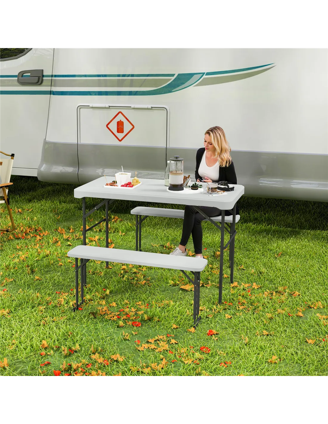 Outsunny Three-Piece Folding Picnic Table and Bench Set - Light Grey