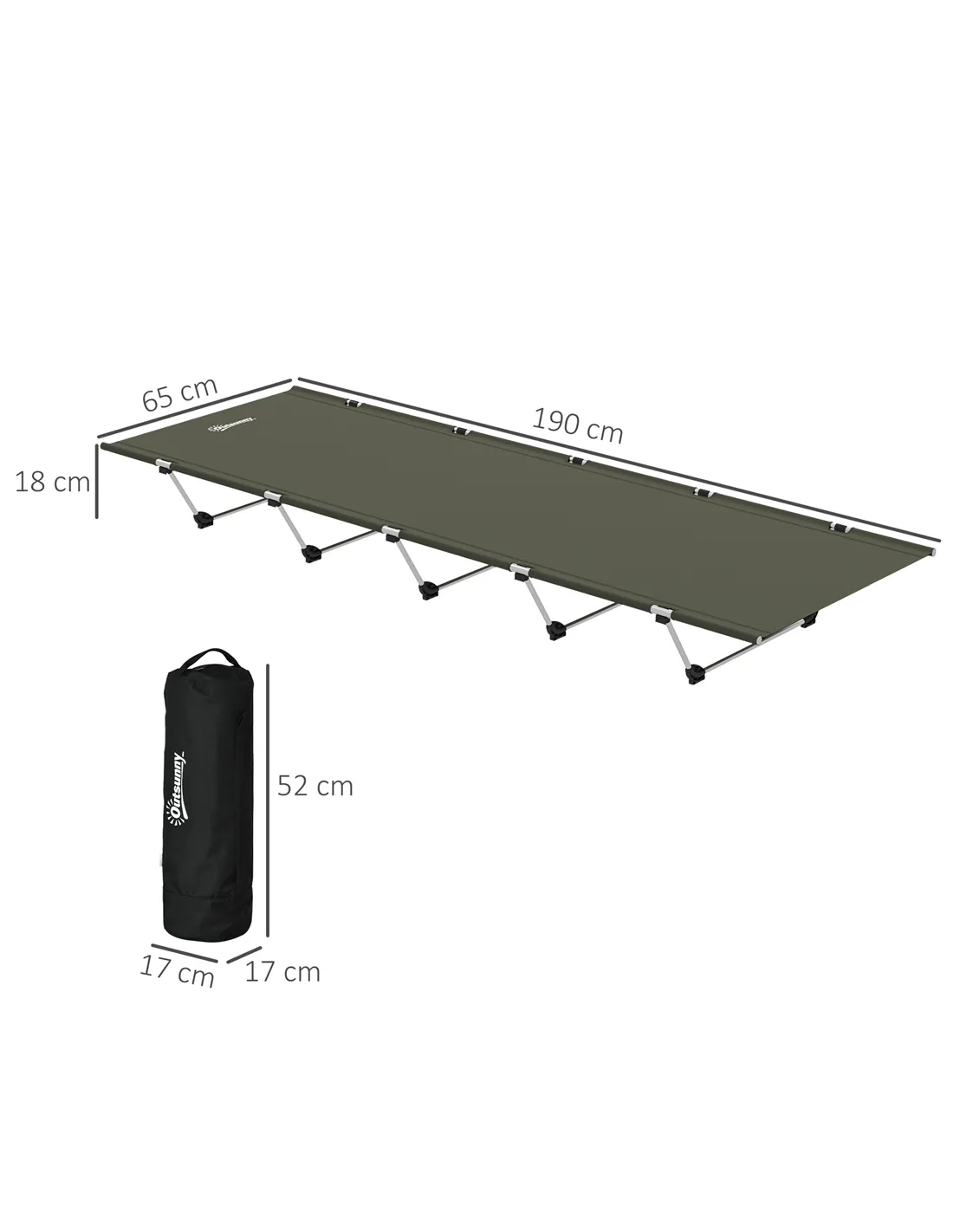 Outsunny Lightweight Camping Bed, Aluminium Portable Camp Cot w/ Strong Support 150kg and Carry Bag for Camping, Dark Green