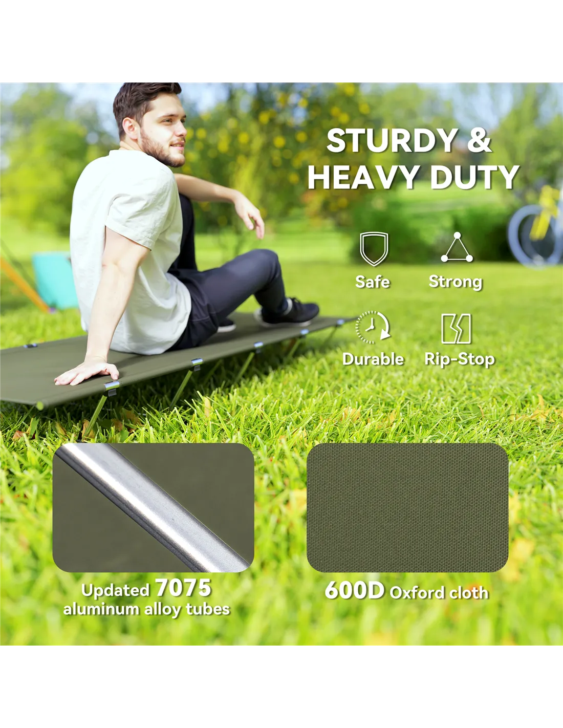 - Taut fabric camping cot so you can sleep comfortably