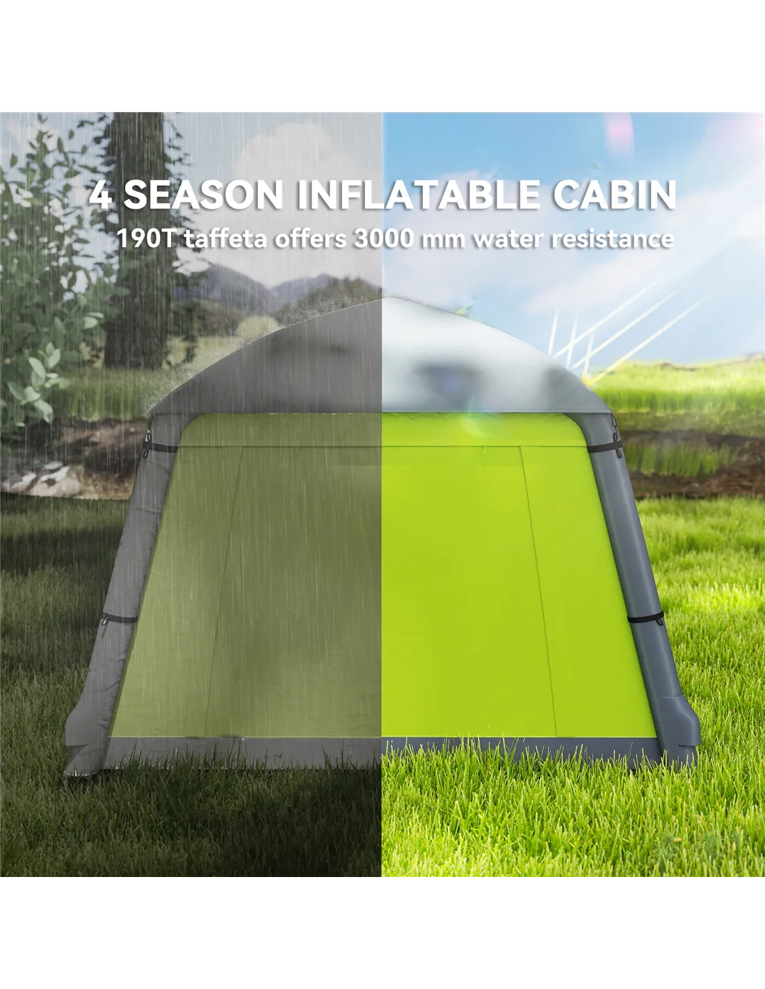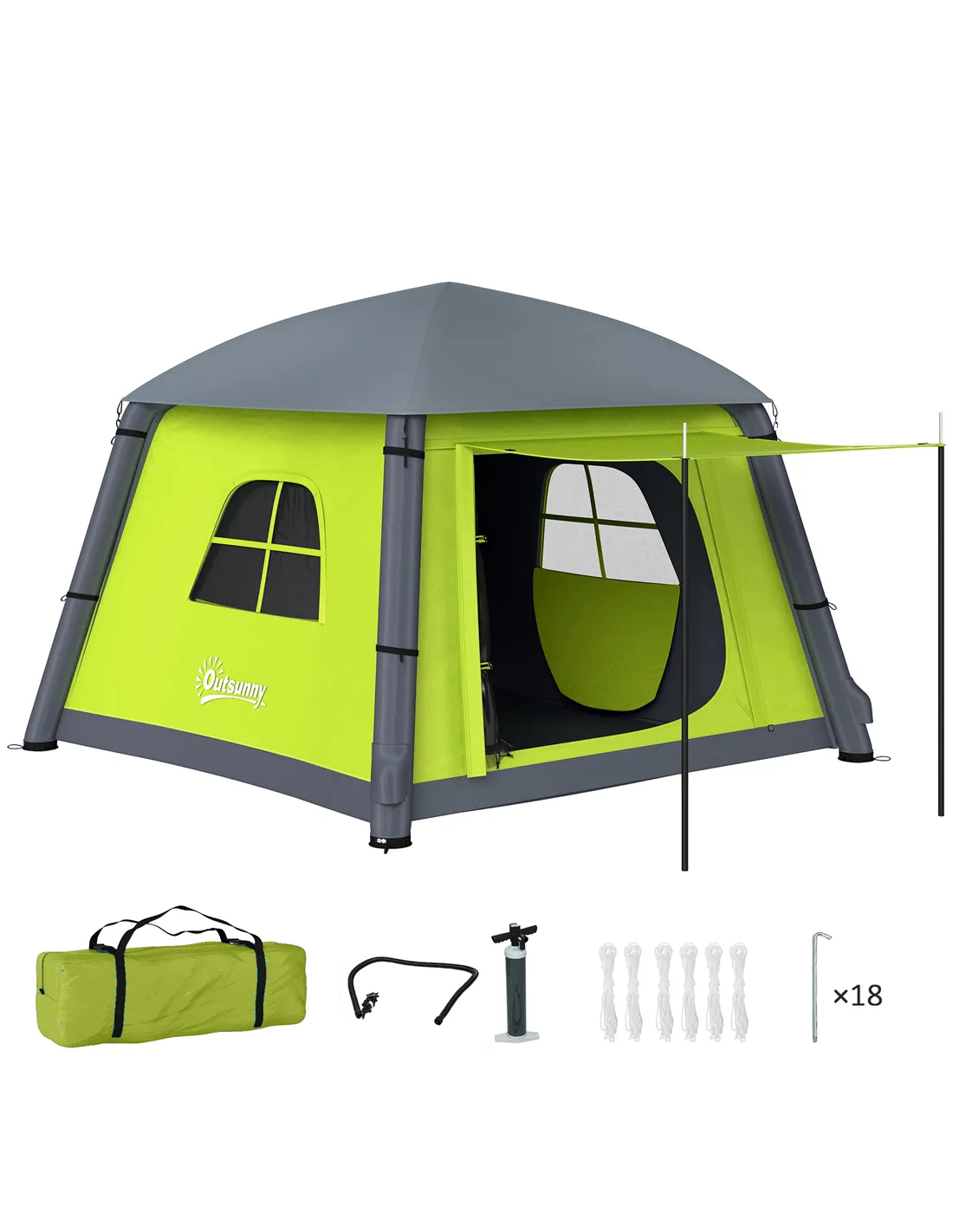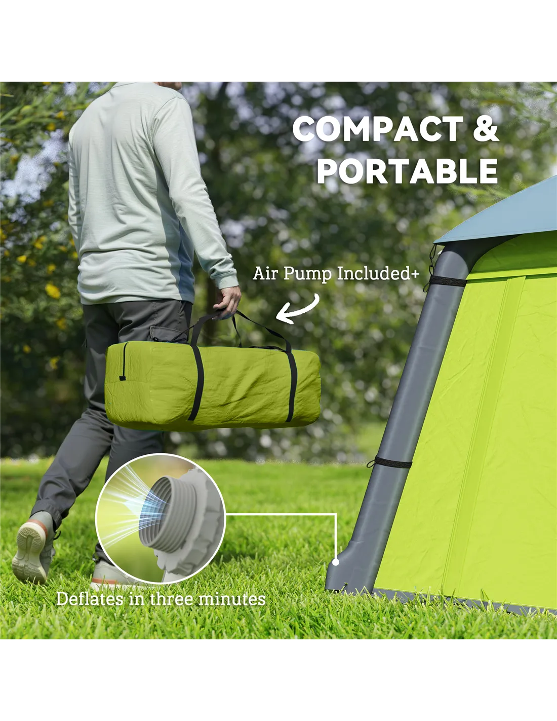 Outsunny Inflatable Camping Tent w/ Hand Pump, Easy Setup 1/2 Person Blow Up Tent Waterproof 190T Taffeta w/ Mesh Windows, Doors and Carry Bag, Green