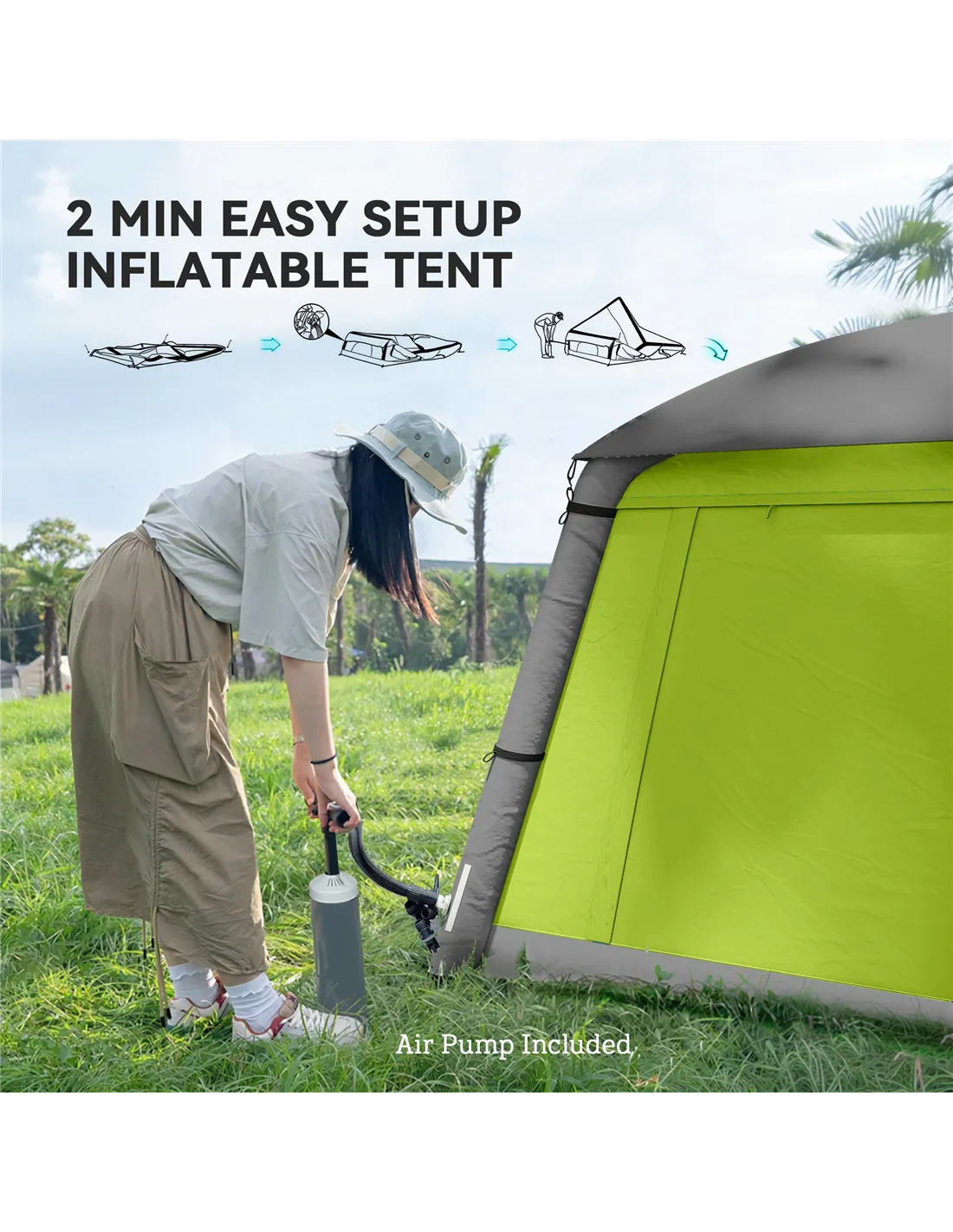 With the included manual air pump, the tent inflates fully in approximately two minutes, making it one of the quickest options for camping shelters. - Is the tent suitable for wet weather?