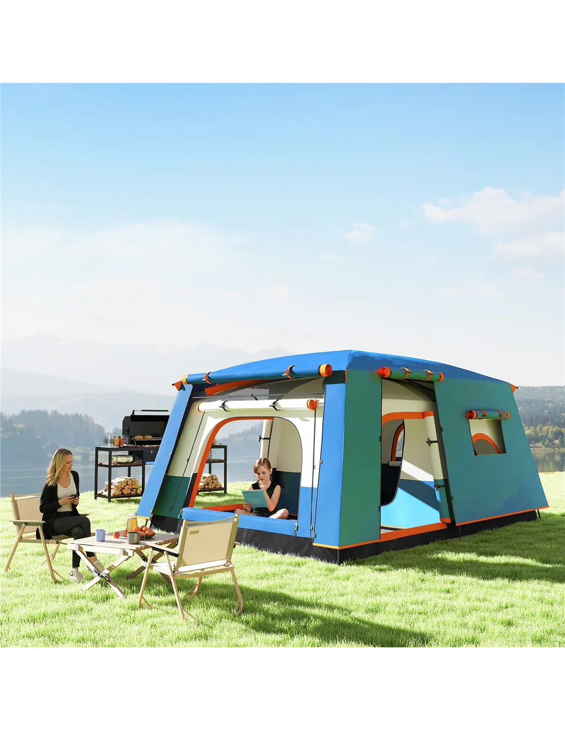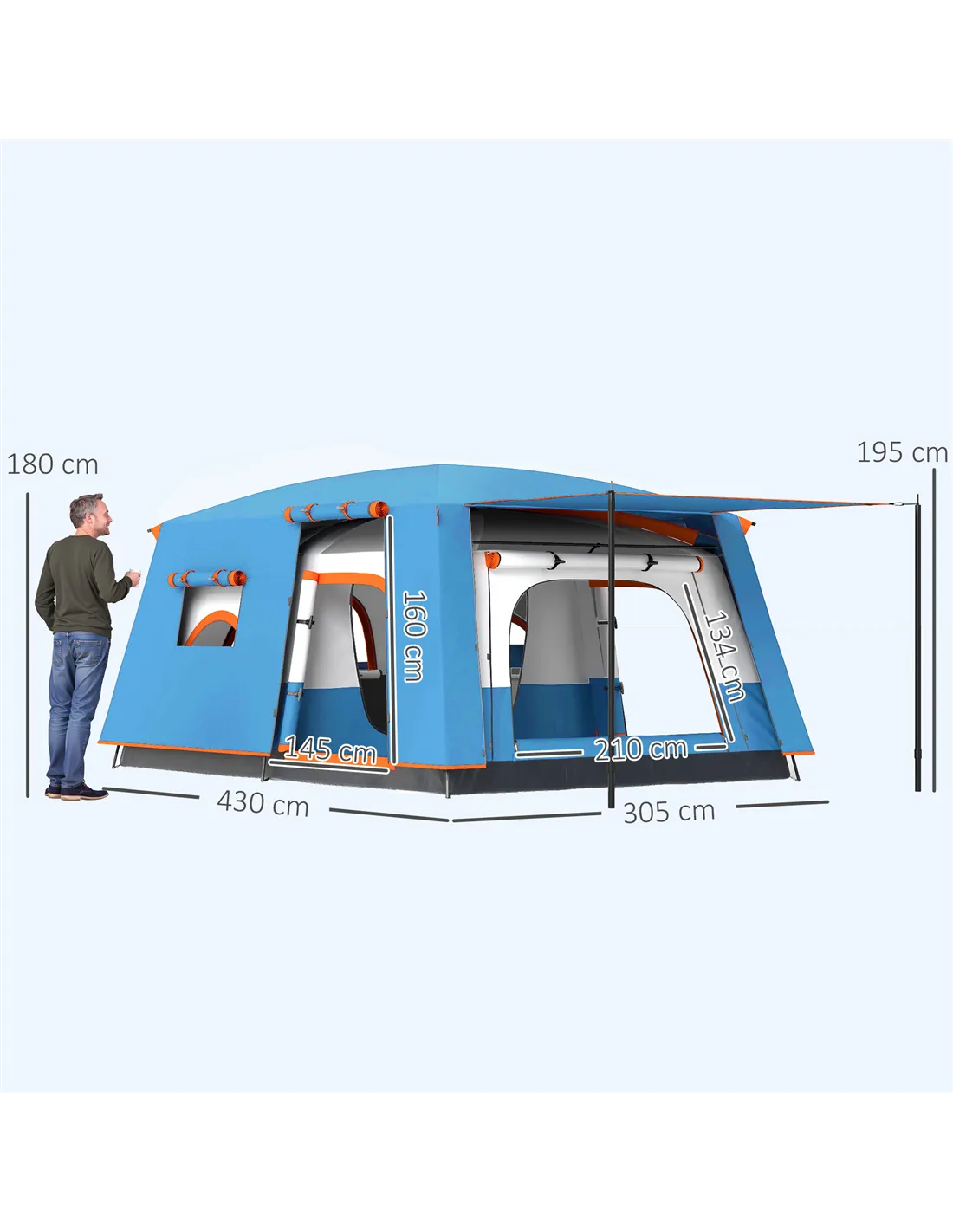 Discover the great outdoors with the Outsunny large family tent, a spacious haven for 4-6 adventurers. This 2 bedroom tent with porch merges comfort and durability, featuring a 3000mm waterproof and UPF 30+ outer layer, alongside a breathable inner layer. Enjoy lots of ventilation from side and rear mesh windows, making this big tent a great choice for family camping, hiking, or backpacking escapades.