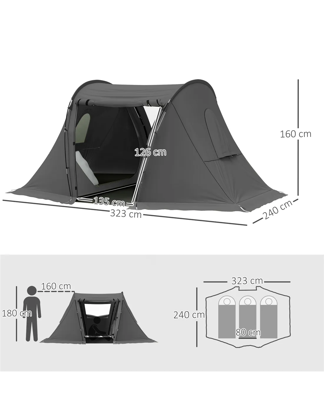 - Overall Dimensions: 323L x 240W x 160H cm