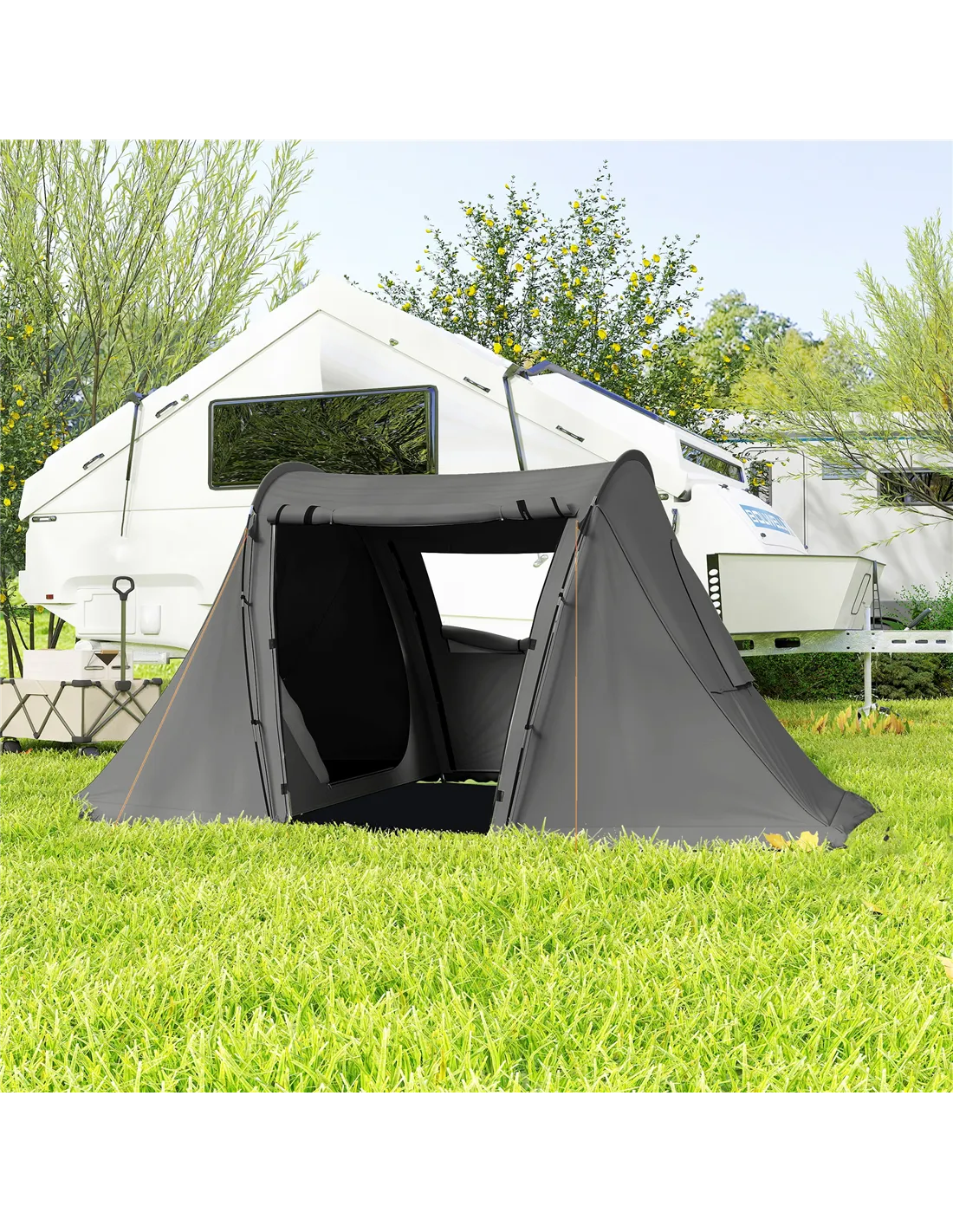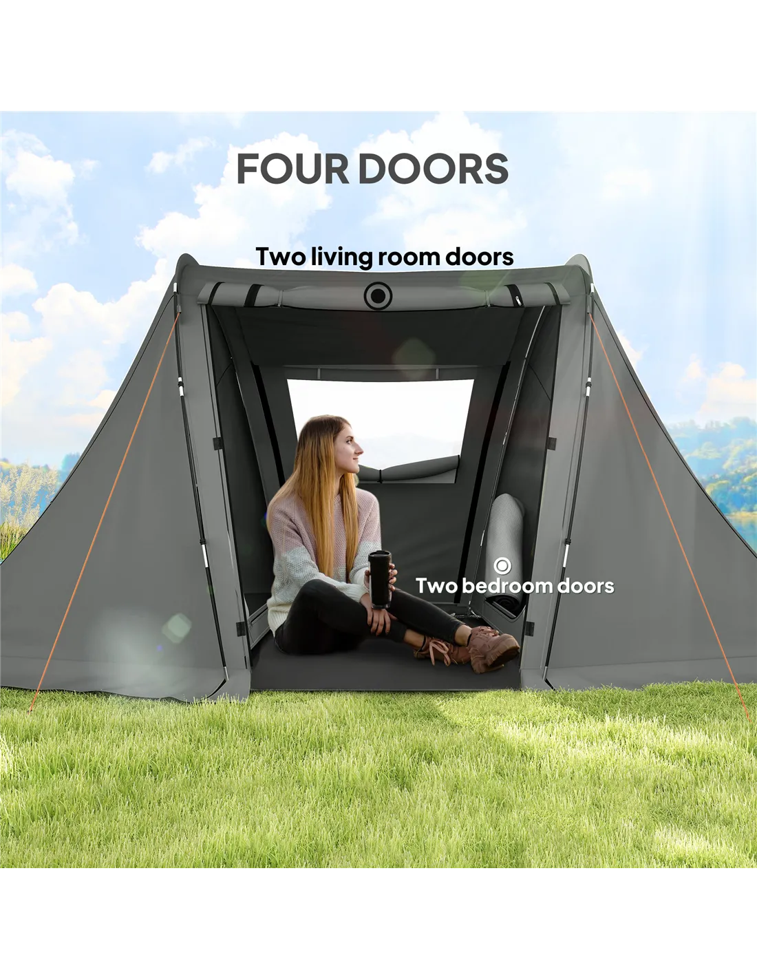 - Four tents windows and doors enhance airflow and brightness