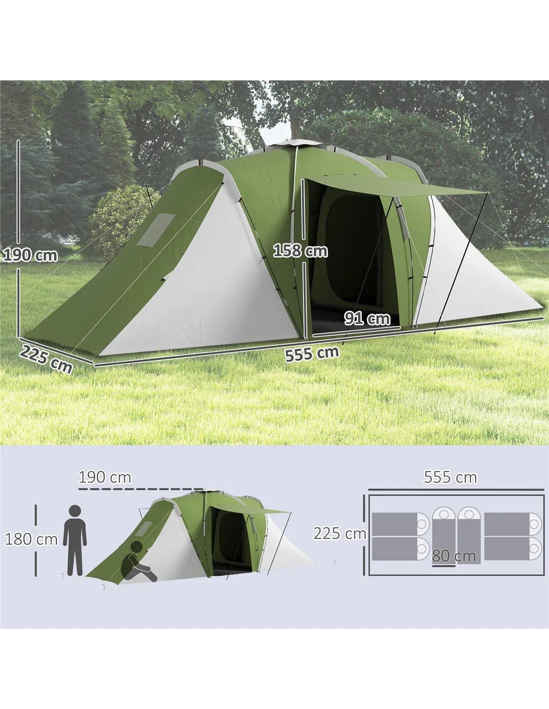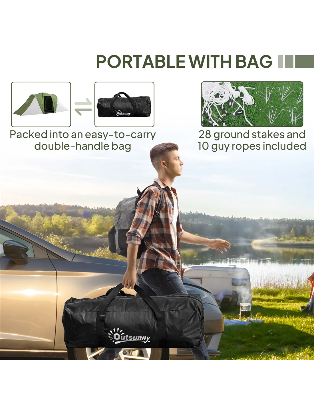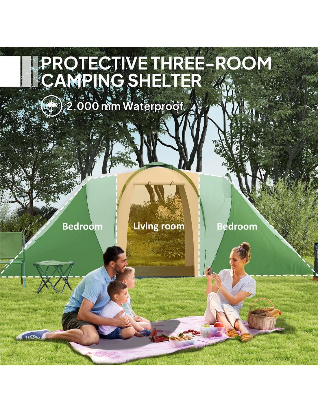 Outsunny Large Camping Tent Tunnel Tent with 2 Bedroom and Living Area, 2000mm Waterproof, Portable with Bag for 4-6 Man, Green