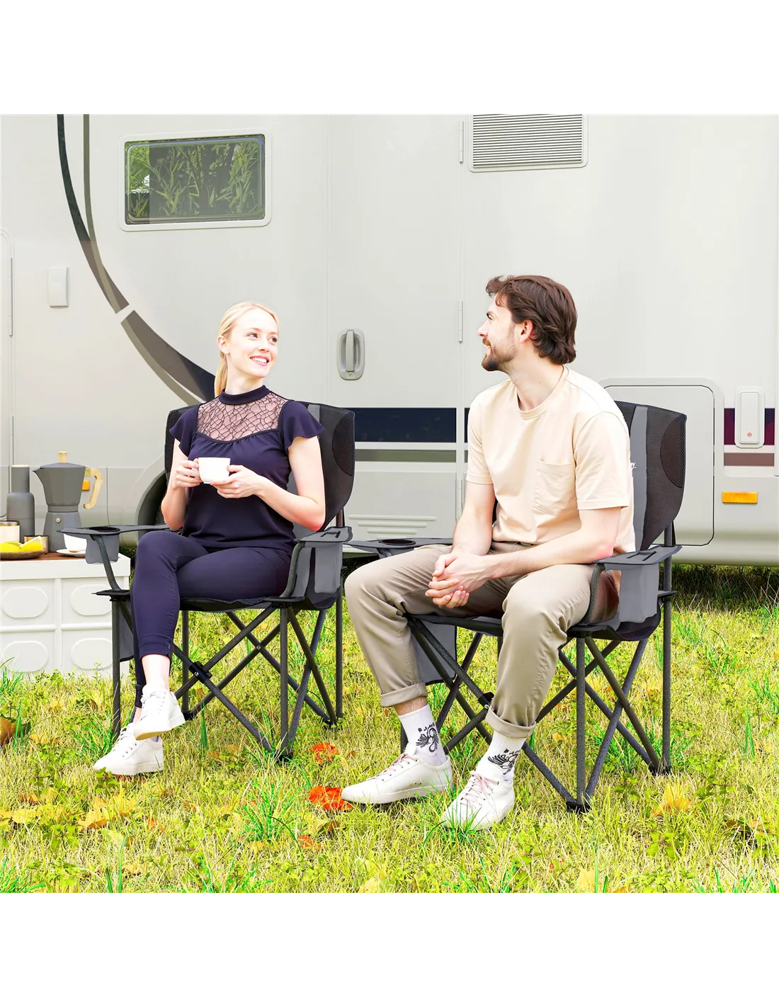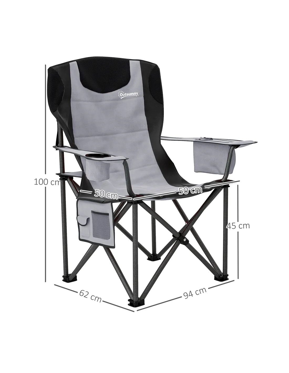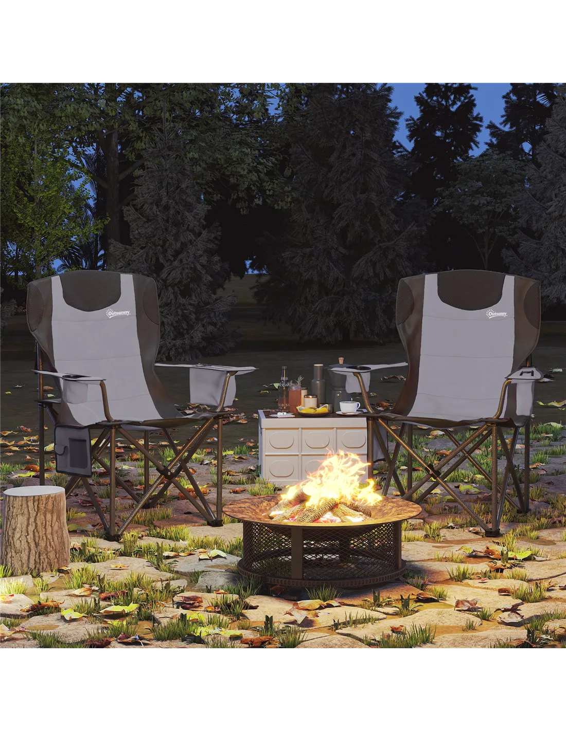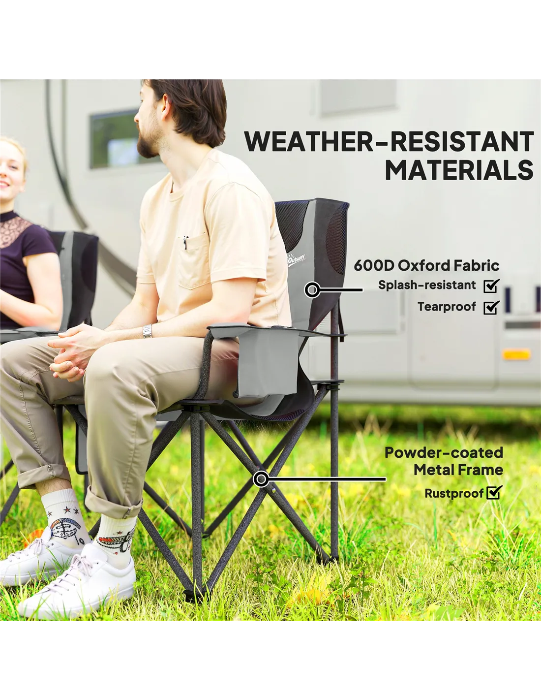 Outsunny Set of 2 Folding Camping Chairs, Padded Camping Chairs with Adjustable Armrests, Portable & Lightweight Folding Camp Chair with Cooler Bag, Cup Holder and Side Pockets, Grey