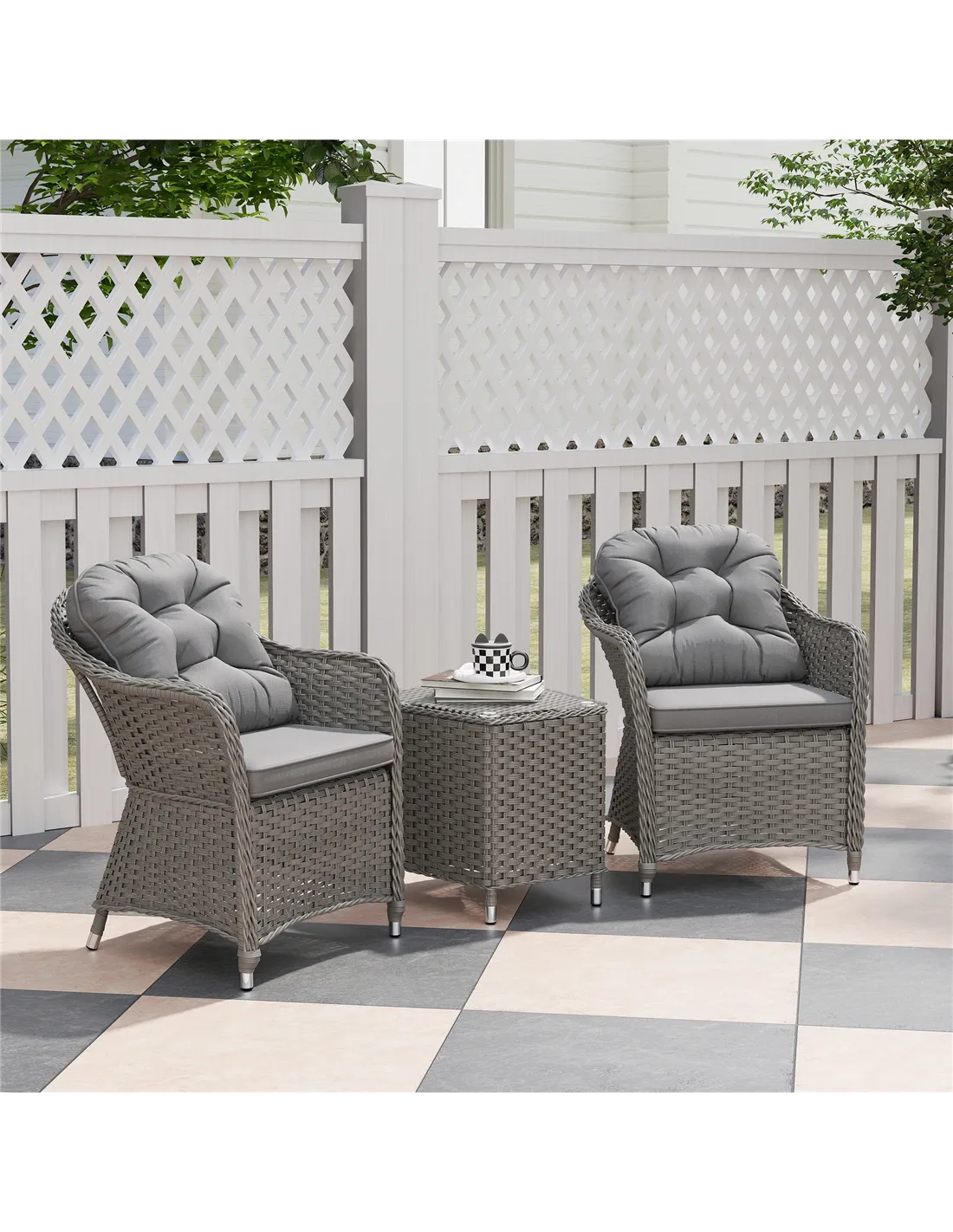 Outsunny Three-Piece Super Padded Rattan Set - Light Grey