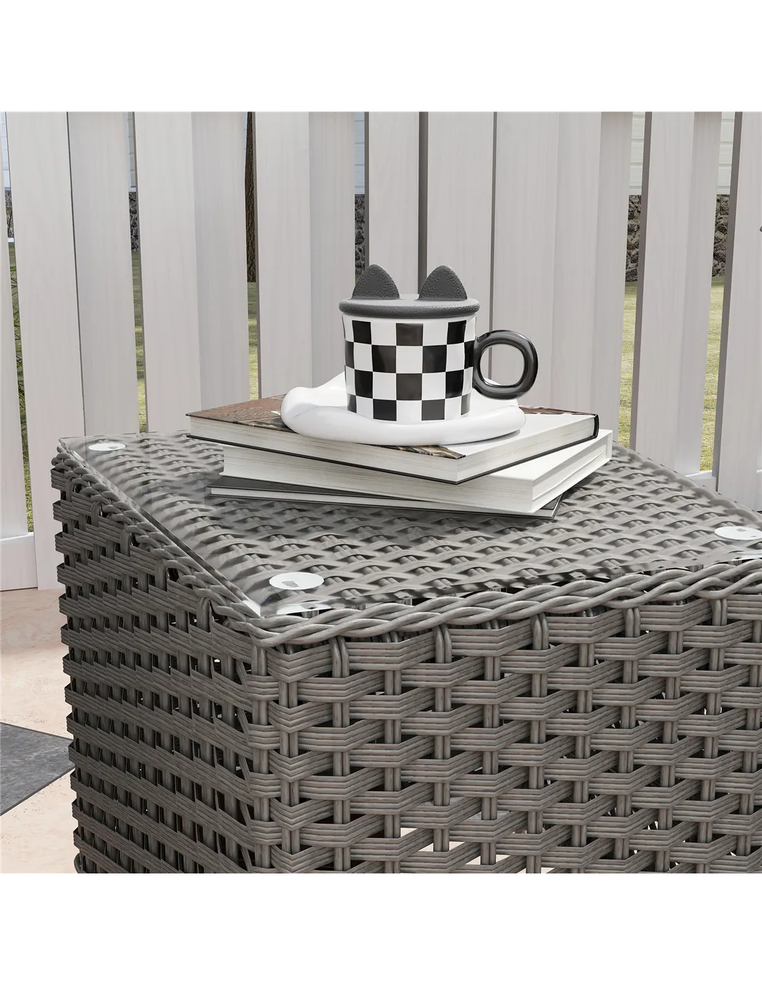 Do those lazy afternoons in the sun the right way - choose this rattan patio furniture set from Outsunny. Formed of three pieces - a garden table and two chairs; enjoy outdoors with company. Powder coated aluminium frame for a strong structure, wrapped in stylish plastic rattan - double the durability. Both chairs come with seat and back cushions for comfort.