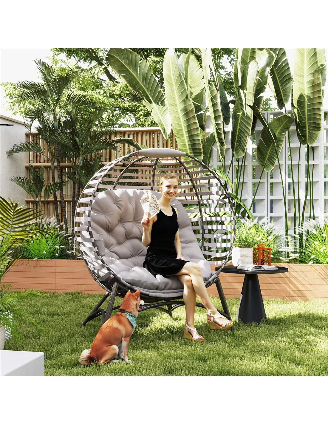 Every outdoor spot needs an egg chair - why not complete yours with double the style: go for this single-seater piece from Outsunny. The large, curved design means you can fall back into it to hideaway, fitted with the large and plush cushion for lots of comfort. The frame is made from single parts: the long metal lines for full support, with fabric panels in-between so it can be folded to 1/4 extended size: easy to carry and store. Comes completes on a four-legged base for full support.