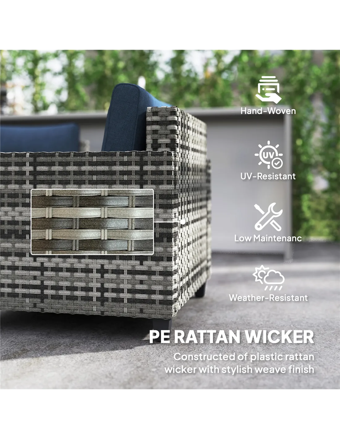 - Powder coated steel frame for a strong core, wrapped in stylish and protective plastic rattan