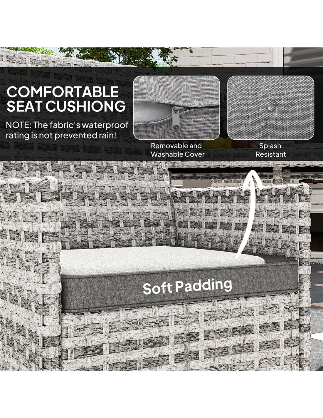 - Removable, washable cushions ensure easy maintenance and comfort