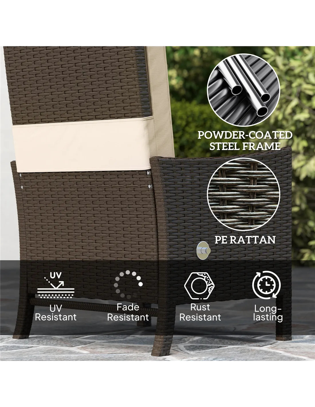- UV and fade-resistant PE rattan for long-lasting outdoor use