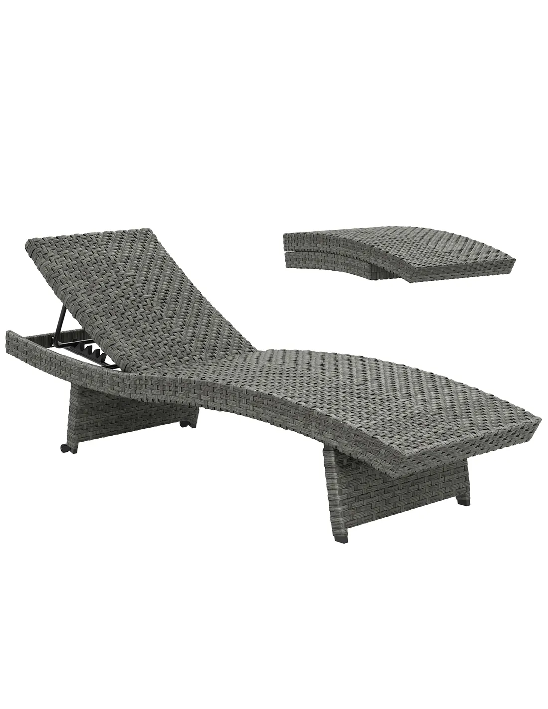 Outsunny Outdoor PE Rattan Sun Lounger, Folding Wicker Garden Lounger Recliner with 4-Level Adjustable Backrest, Rolling Sunbed Lounge Chair with Wheels, Non-Slip Legs for Balcony, Beach, Mixed-grey