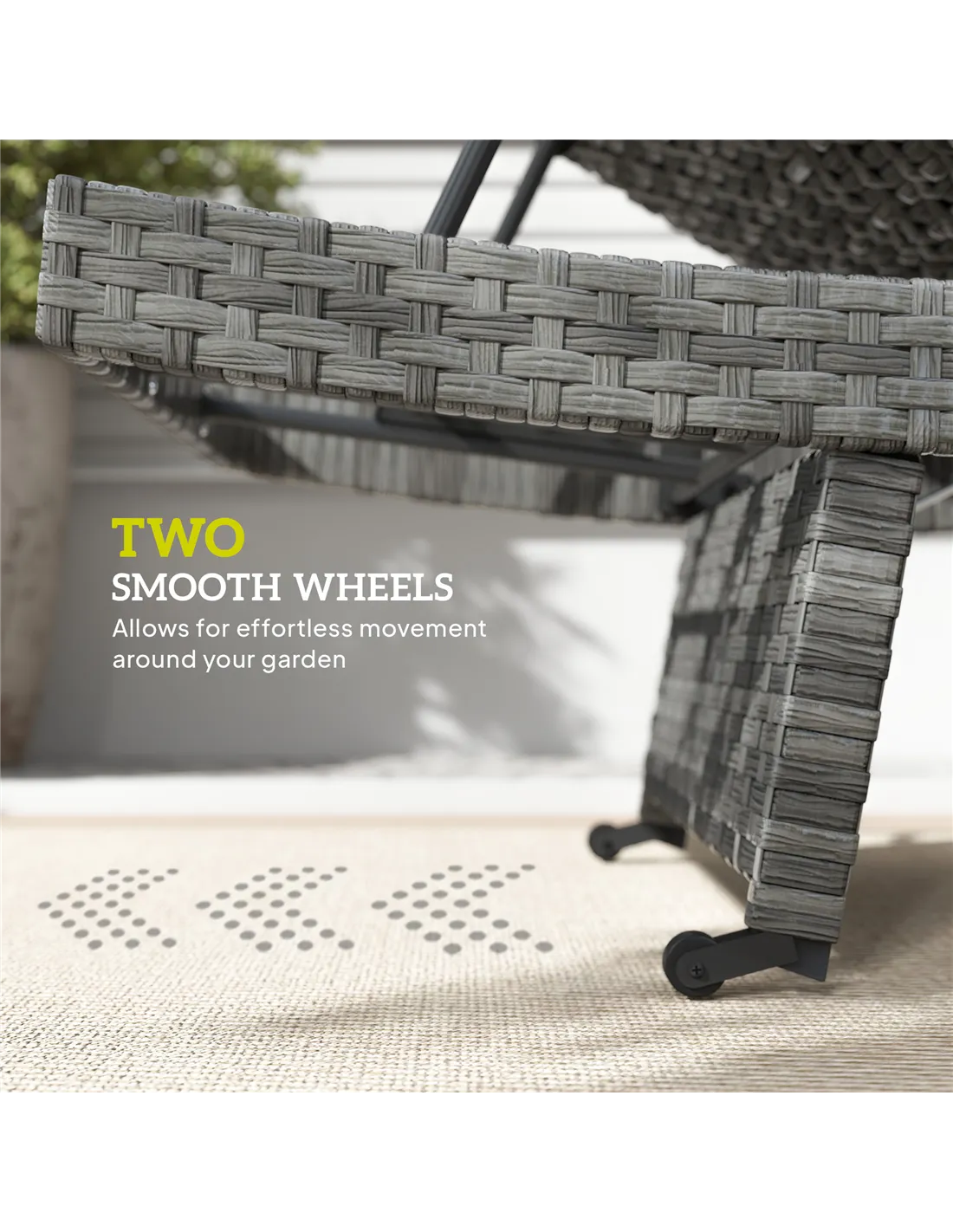 - Two smooth wheels allow for effortless relocation