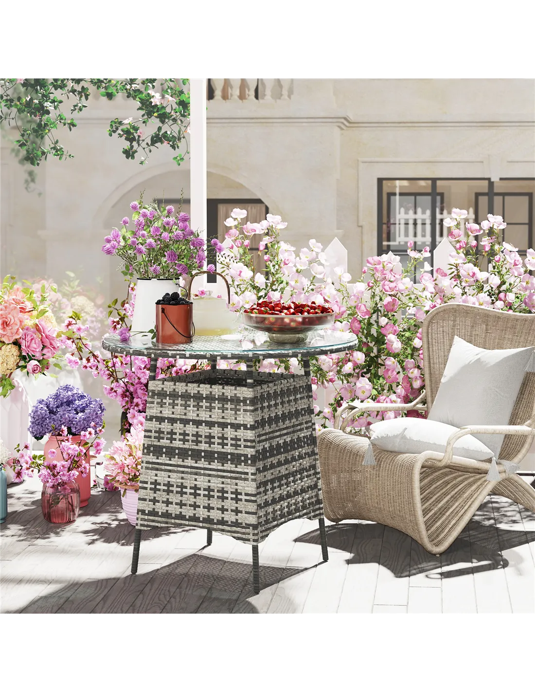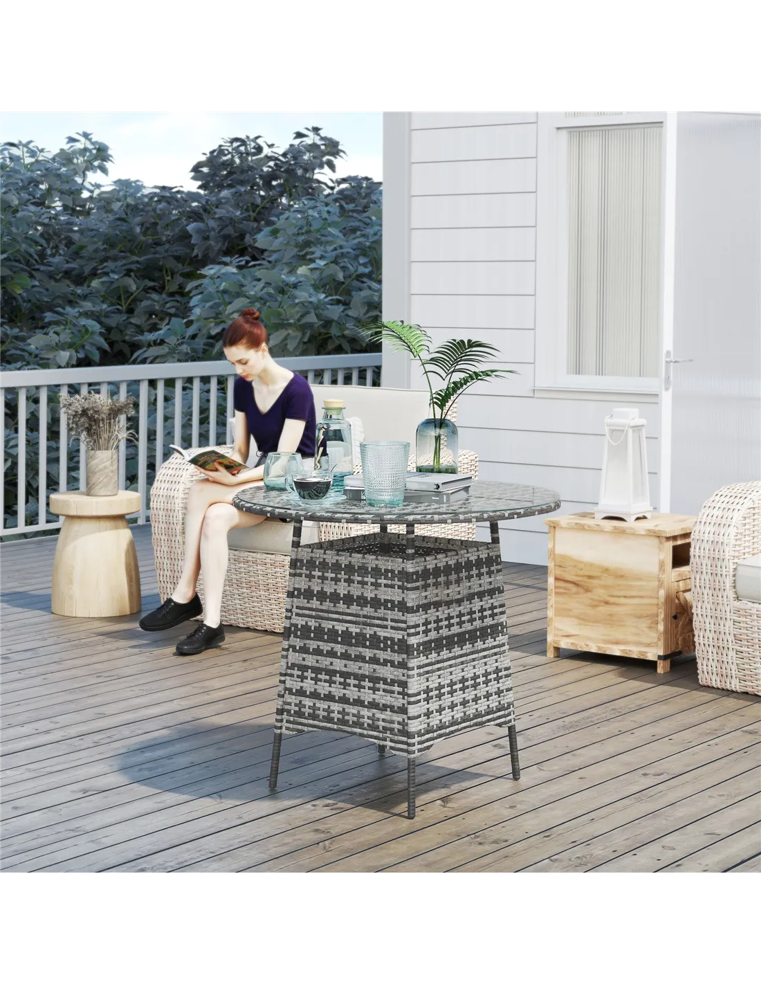 - Material: Steel, PE Rattan, Tempered Glass