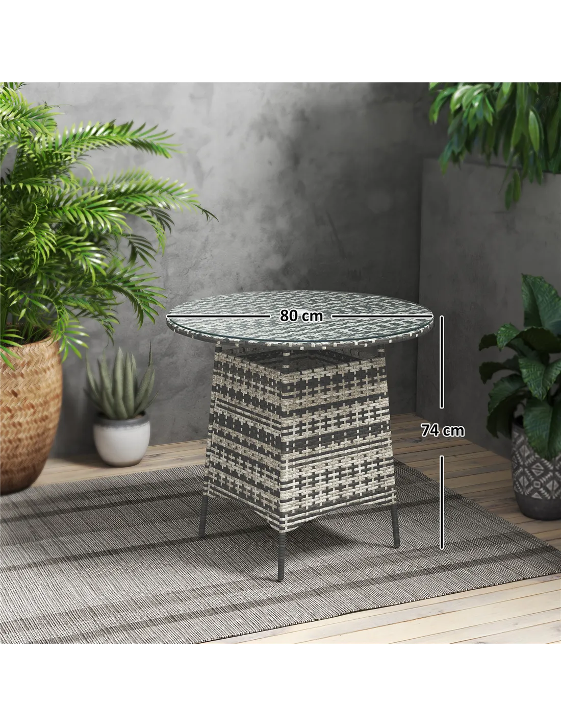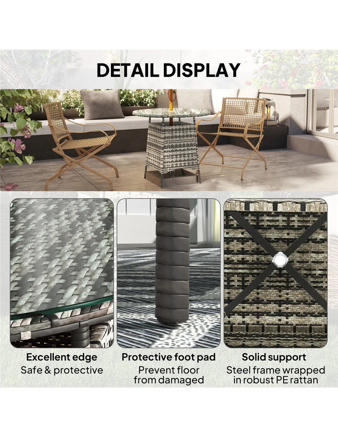 The Outsunny rattan garden table is a versatile addition to any outdoor setting. Perfect for enjoying morning coffee on the patio or hosting casual garden parties, its compact design fits effortlessly into balconies, verandas, or conservatories. The integrated umbrella hole allows for easy shade installation, making it ideal for sunny afternoons. Thanks to its durable tempered glass surface and weather-resistant materials, this table also serves well as a stylish side table beside loungers or outdoor sofas, enhancing your alfresco living experience.