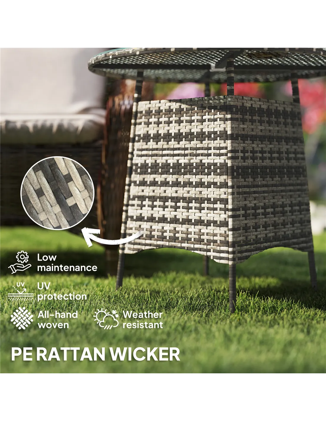 - PE rattan is UV-resistant, enhancing longevity