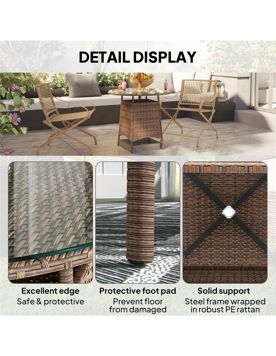 - Material: Steel, PE Rattan, Tempered Glass