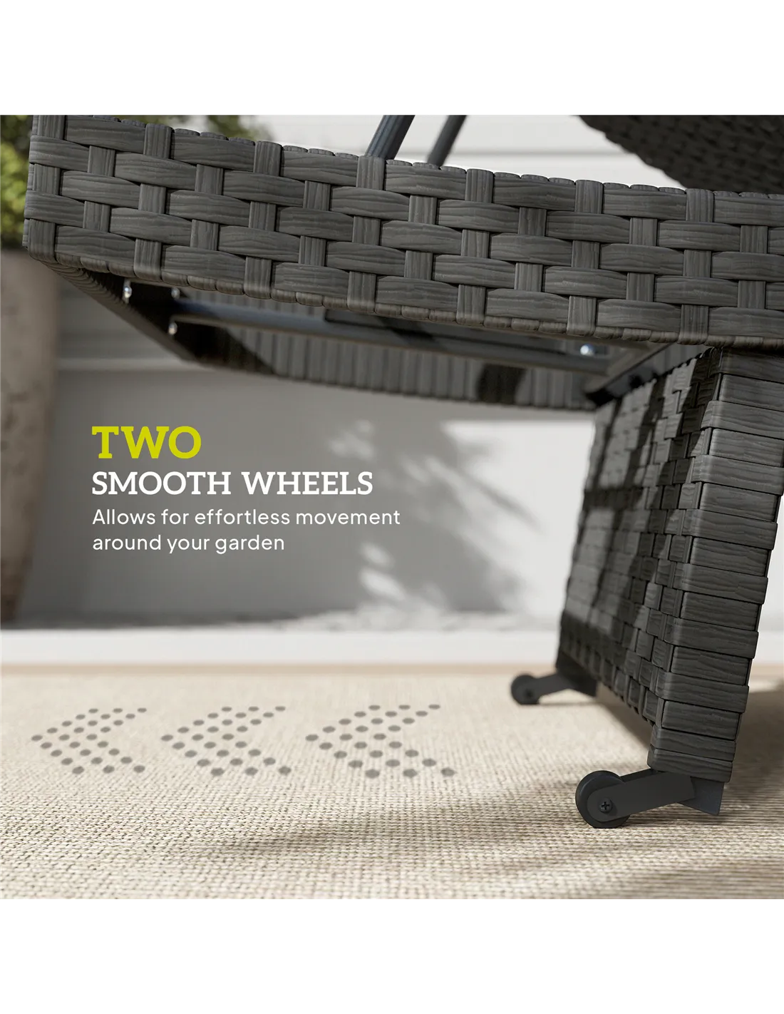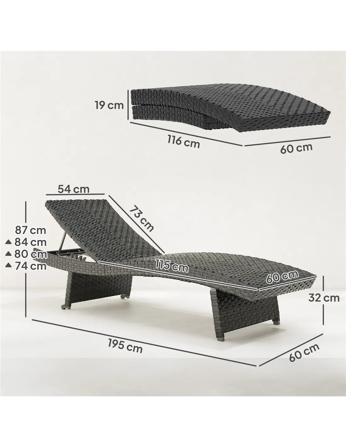 Relax in style with the Outsunny Rattan Sun Lounger! The ergonomic 'S' shaped curve offers comfort, while the adjustable backrest provides four reclining positions. With smooth wheels for easy mobility and a foldable design for storage, this outdoor lounge chair made of PE rattan and steel ensures a cool, relaxing experience for years. Great for your outdoor oasis!