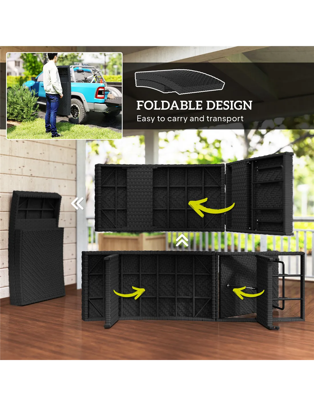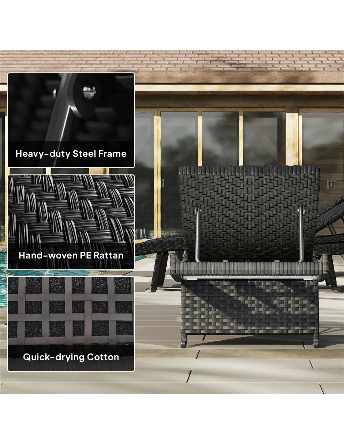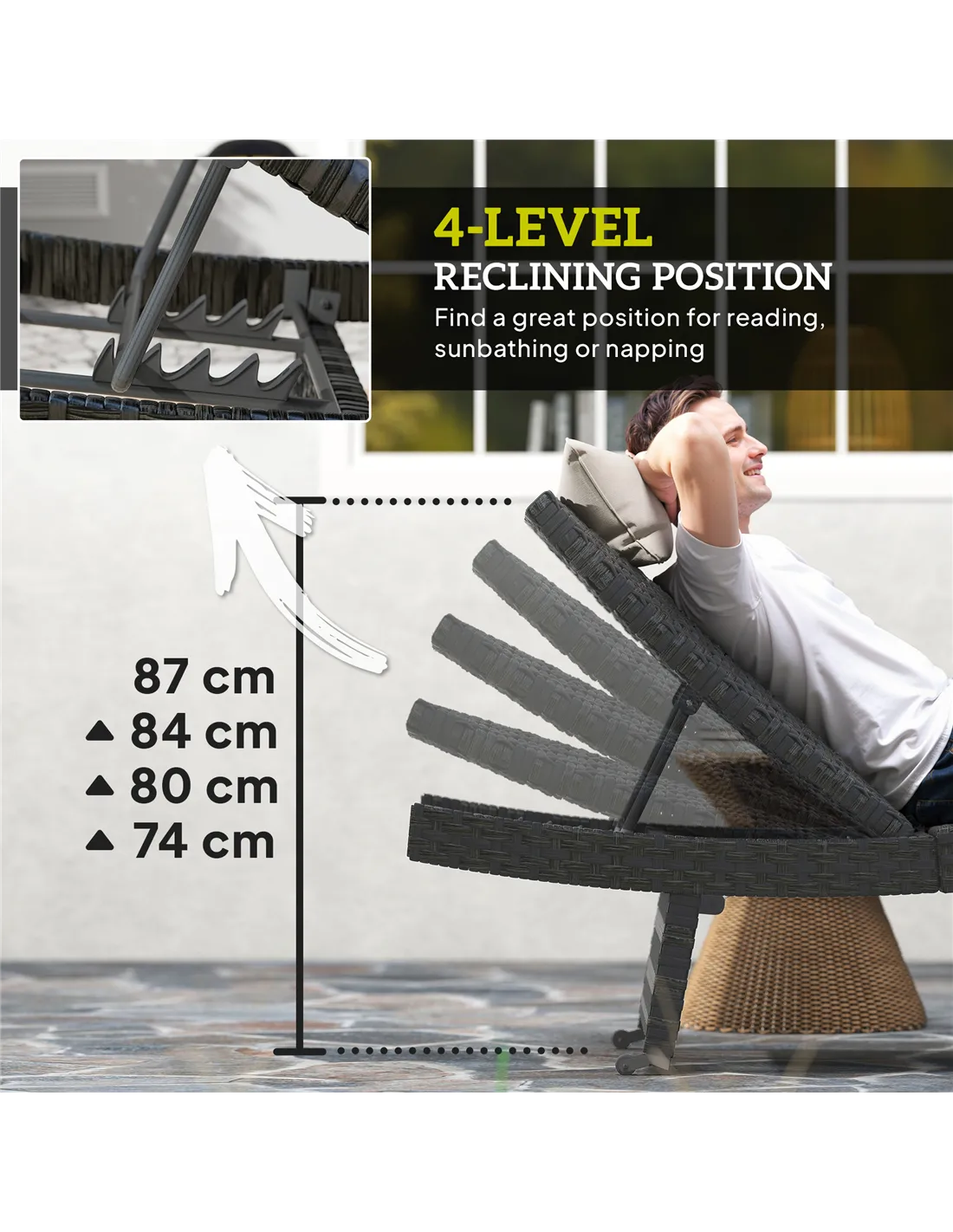 Outsunny Outdoor PE Rattan Sun Lounger, Folding Wicker Garden Lounger Recliner with 4-Level Adjustable Backrest, Rolling Sunbed Lounge Chair with Wheels, Non-Slip Legs for Balcony, Beach, Black