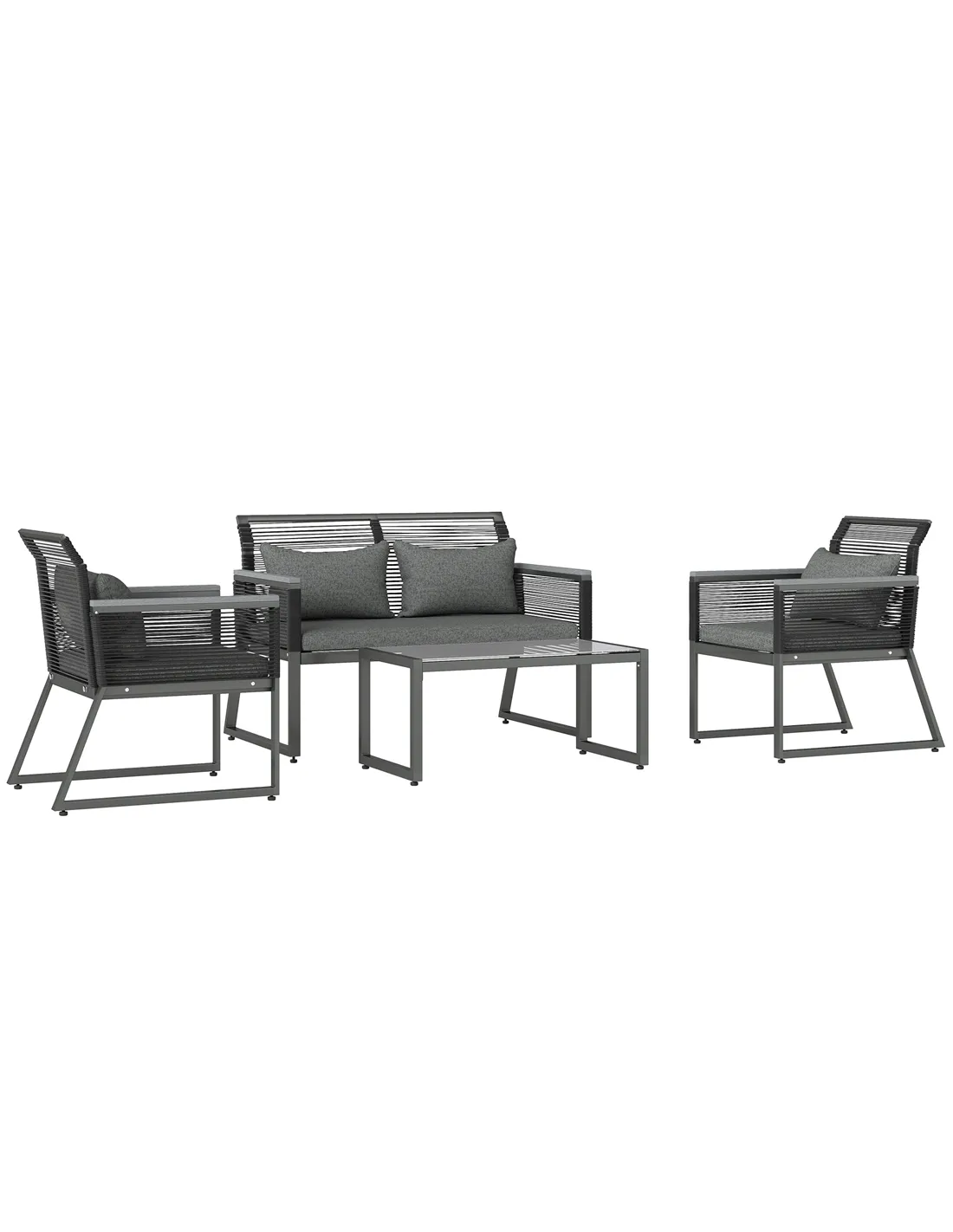 Outsunny 4 Pieces Rattan Garden Furniture Set - Charcoal Grey