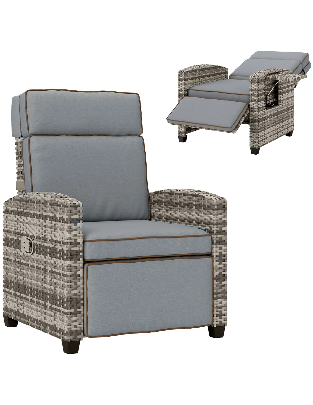 Outsunny 145° Reclining Rattan Armchair, with Footrest - Mixed Grey/Grey