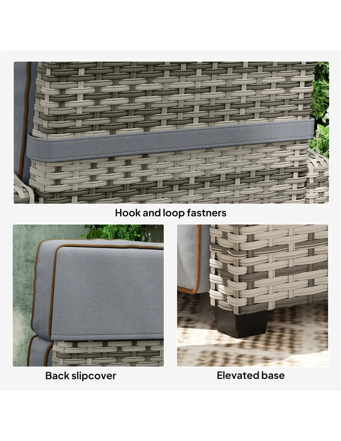 - Strong steel frame, wrapped in stylish and all-weather double-strand half-round plastic rattan