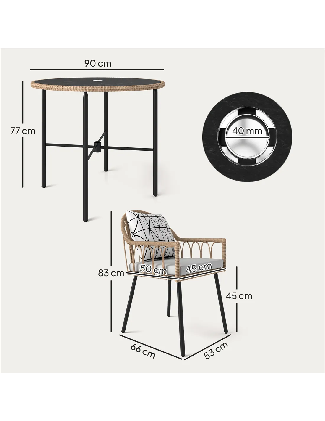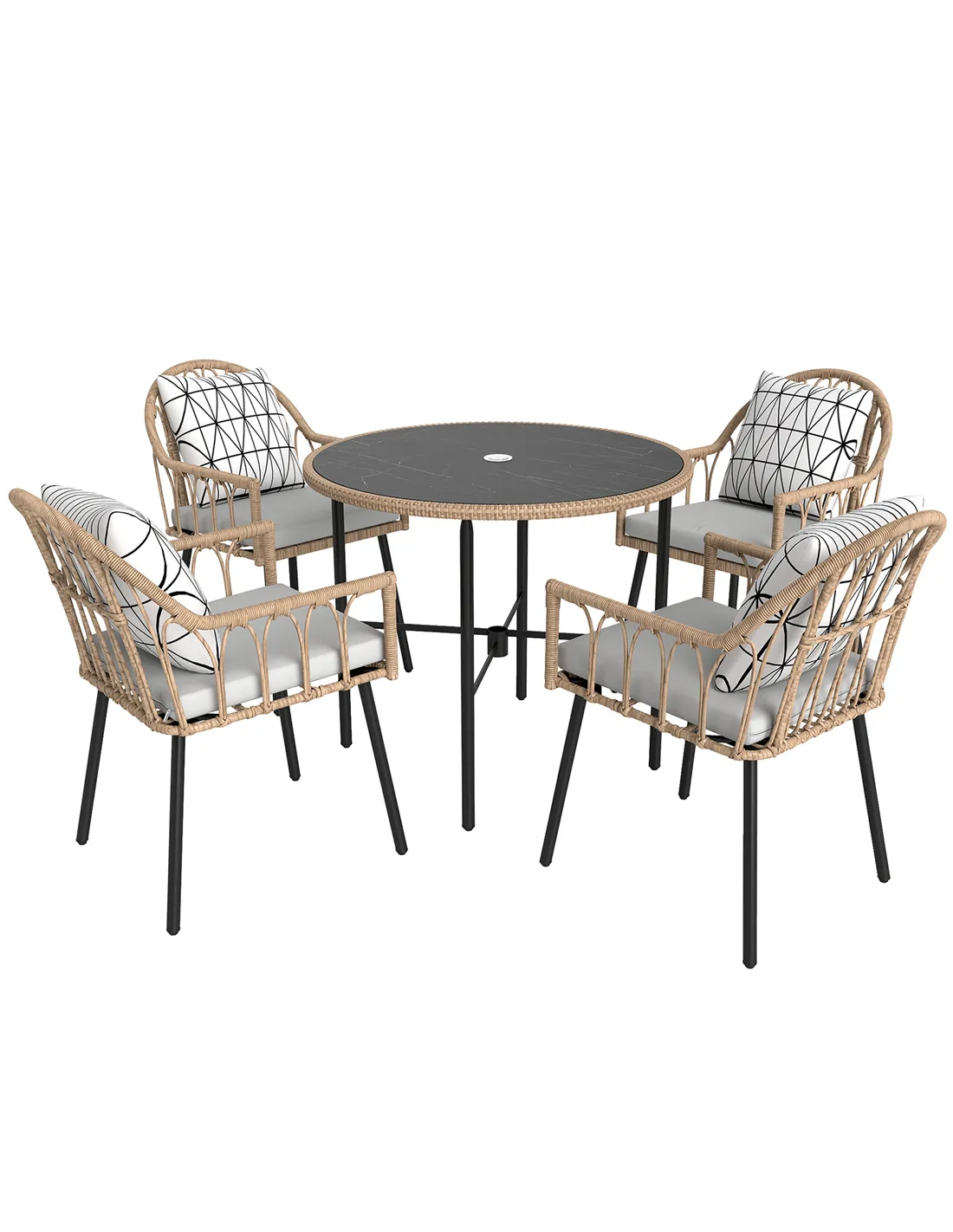 - 5-piece rattan garden furniture set with parasol hole enhances outdoor dining experiences
