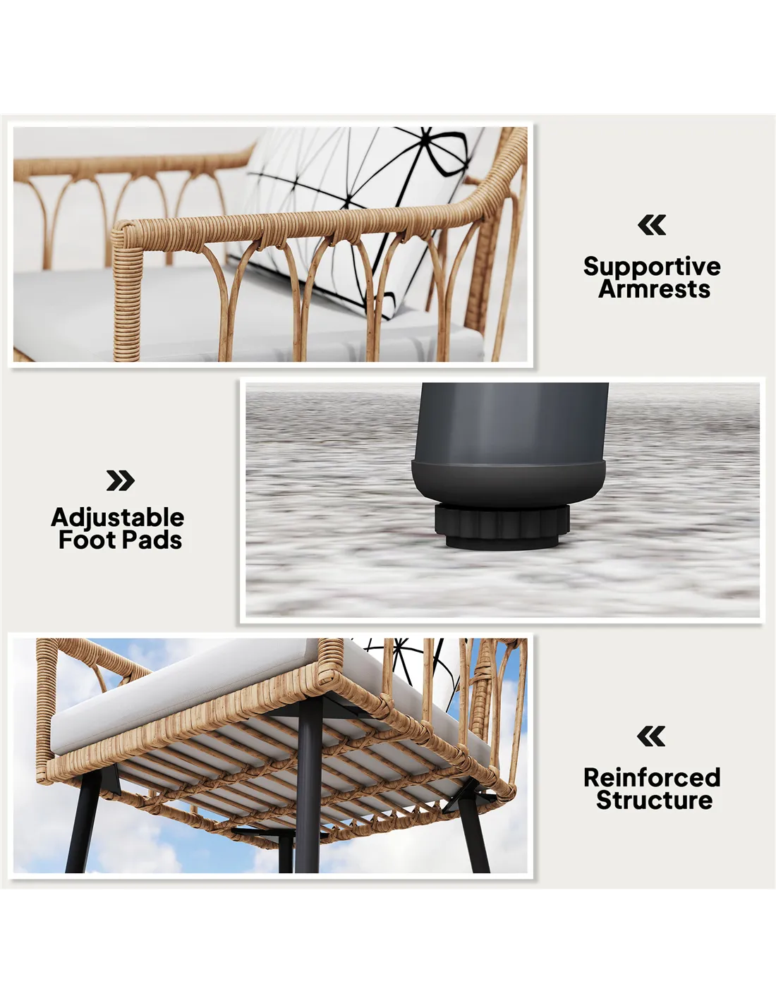 Yes, the powder-coated steel frame and weather-resistant PE rattan make it durable for outdoor conditions throughout the year. However, it is recommended to use protective covers during harsh weather to extend its lifespan. - Can the cushions be cleaned easily?