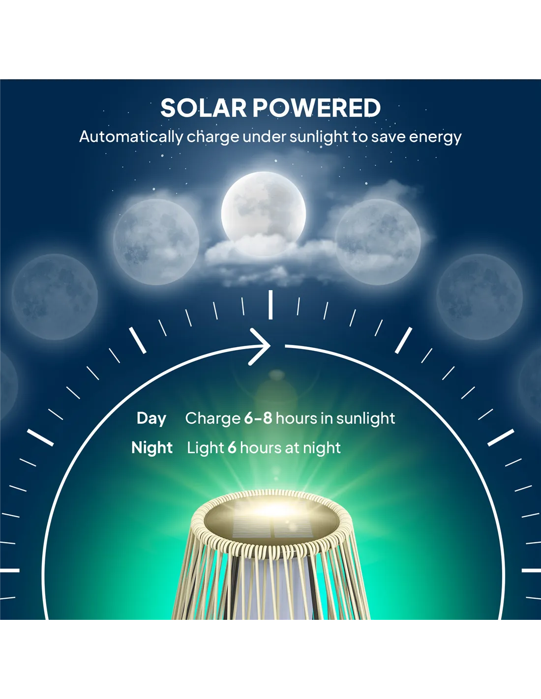 When fully charged in 6-8 hours of sunlight, the lamp provides up to 6 hours of illumination. - Is the lamp suitable for all weather conditions?