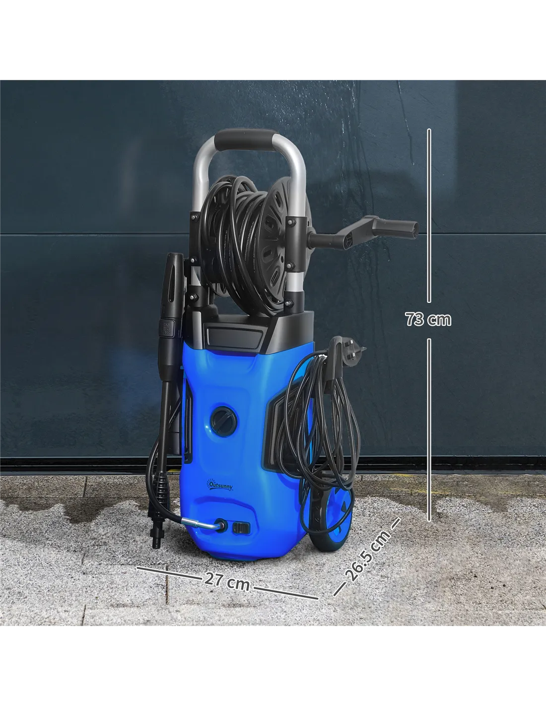 Outsunny 1800W High Pressure Washer, 150 Bar Pressure, 420 L/h Flow, Portable Power Washer Jet Wash Cleaner with Adjustable Nozzle, 6M Hose, Hose Reel, Steel Handle for Home Patio Car Driveway, Blue