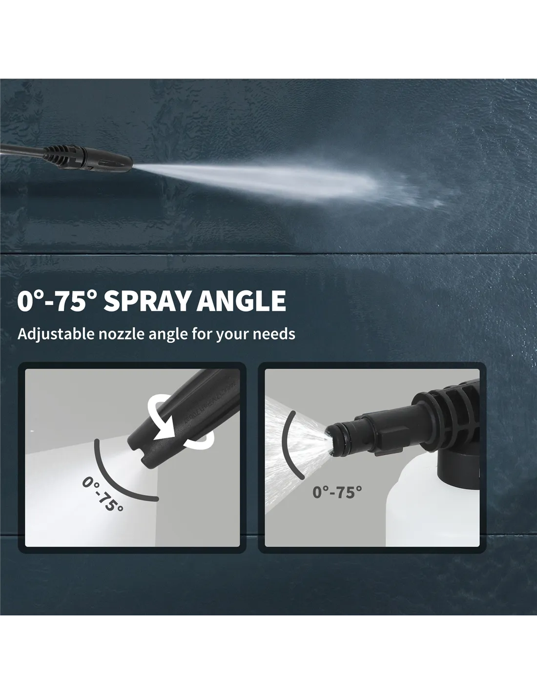 - Adjustable nozzle angle: between 0°-75°