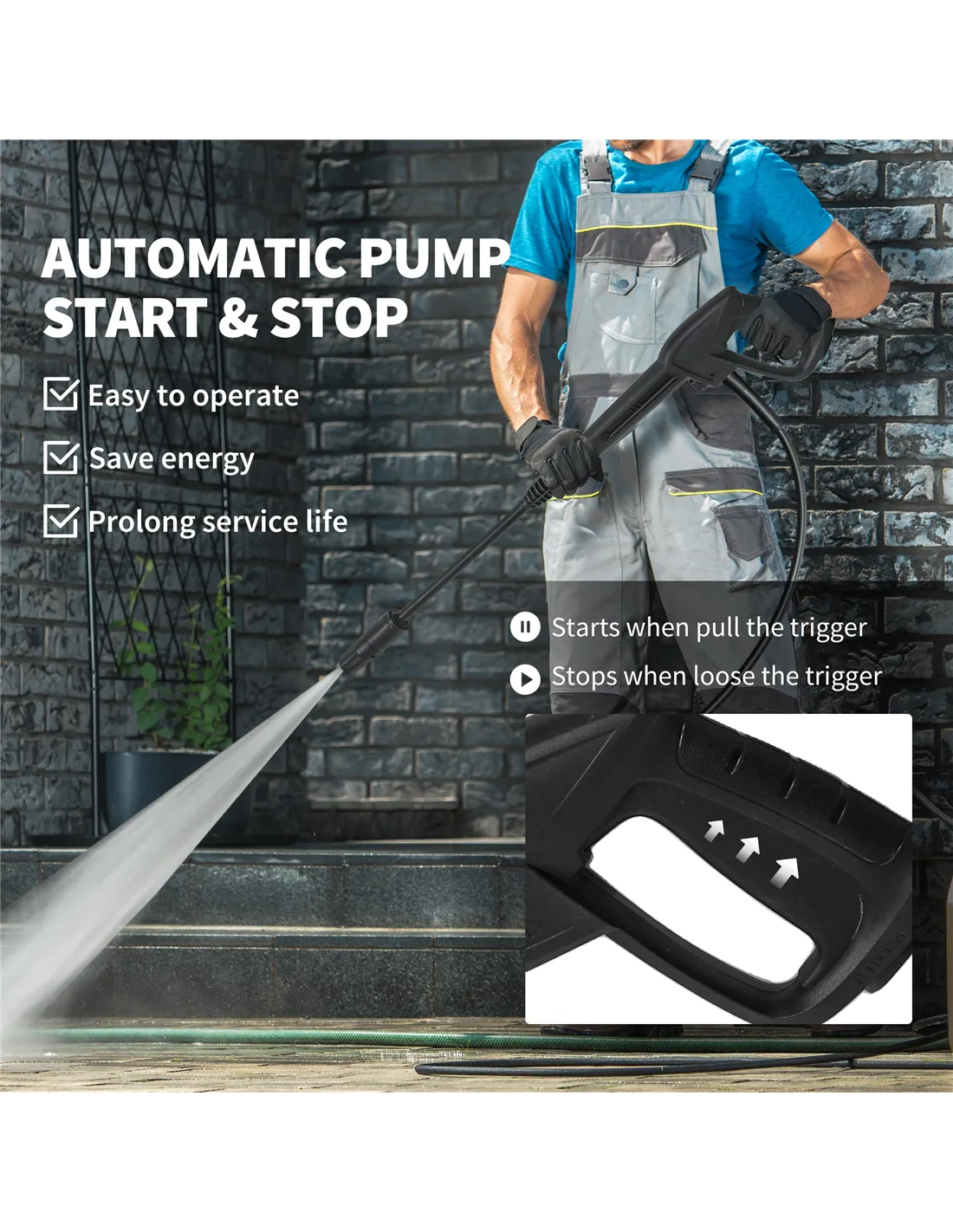 Yes, the adjustable nozzle allows you to control the spray angle from 0° to 75°, enabling gentle cleaning for sensitive areas like outdoor furniture or painted walls. - Does this pressure washer require assembly?