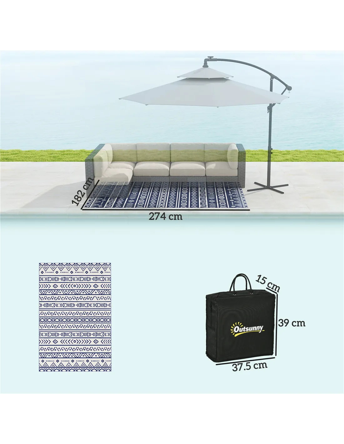 Outsunny Reversible Outdoor Rug with Carry Bag, Waterproof Plastic Straw Mat for Garden, Deck, RV, Picnic, Beach, Camping, 182 x 274cm, Dark Blue and White